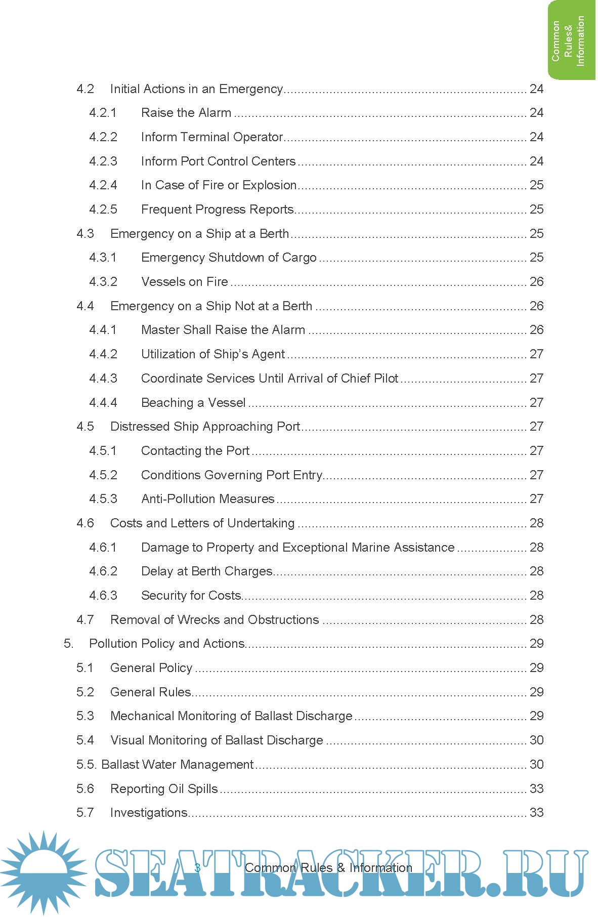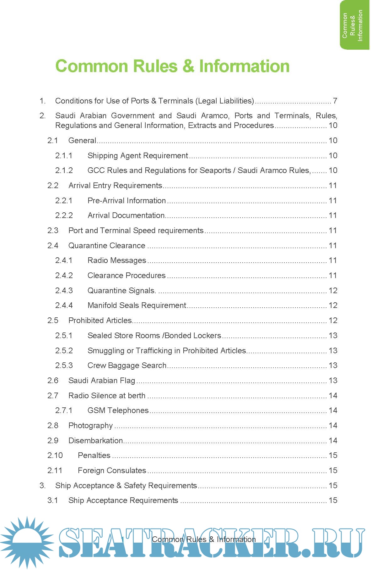 Description: This book is designed as a reference work for the purpose of acquainting Owners, Charterers, Masters of vessels and others with the general conditions, rules, regulations, facilities and available services at all Saudi Aramco Terminals. Every vessel which arrives at any Saudi Aramco Port or Terminal must have a copy of this book on board which is obtainable through the vessel’s agent. Every Master wishing to berth at any Saudi Aramco port or terminal must contract to comply with all the rules and regulations contained herein. This book does not replace or modify official publications covering the waters, areas, hazards or other subjects to which it pertains, nor is it intended for such purposes. The information contained herein is believed to be accurate at the time of going to press but Saudi Aramco makes no warranties and assumes no responsibilities regarding this book or any other information which may appear in supplemental publications, additions or corrections supplied by Saudi Aramco.