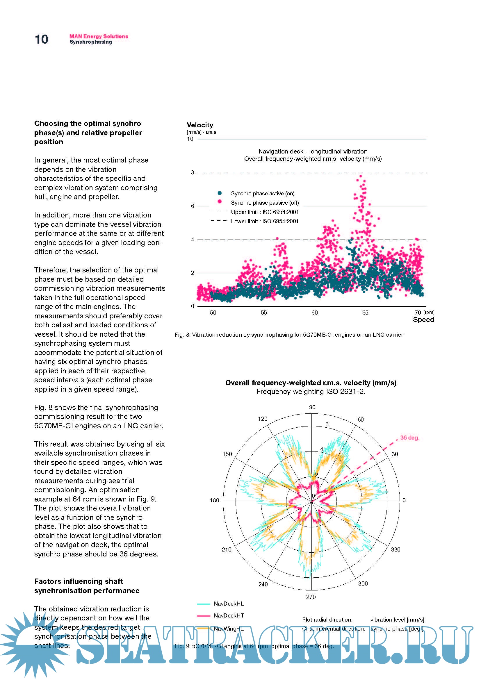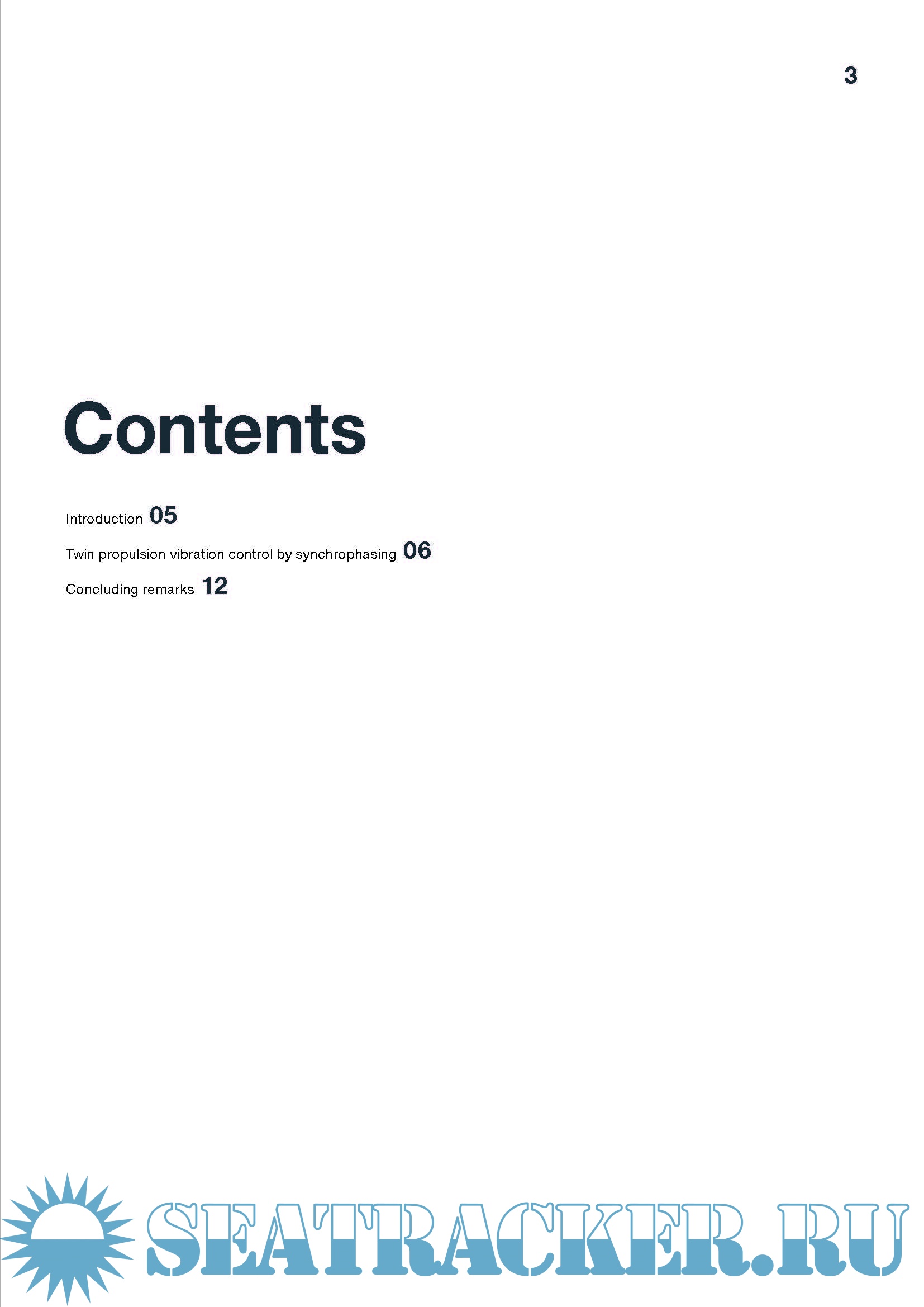 Description: For the increasingly popular twin propulsion design, MAN Energy Solutions has introduced synchrophasing, which is a new and highly effective tool introduced to reduce vibrations of both vessel and engine structure. A comprehensive test period covering over 15 vessels shows a vibration reduction in the range of 50-70%.