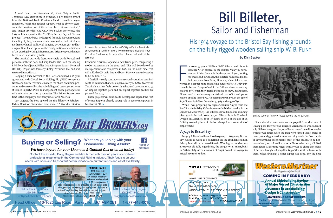 Year: 2023 Language: english Author: Somon Hill (Editor) Genre: Periodical (magazine) Edition: 2023-01 Format: PDF Quality: eBook Pages count: 64 Description: We reach more than 20,000 print and e-readers every month: vessel and fleet owners, boat builders and repairers, captains and crews on tugs, crew boats, ferries, workboats, fishing vessels and the businesses and people who support and supply them. Our writers and editors travel the coast to provide informative feature articles on the working waterfront. Our columnists offer insights into marine legal issues, ports and terminals, and entertainment and education for marine professionals.
