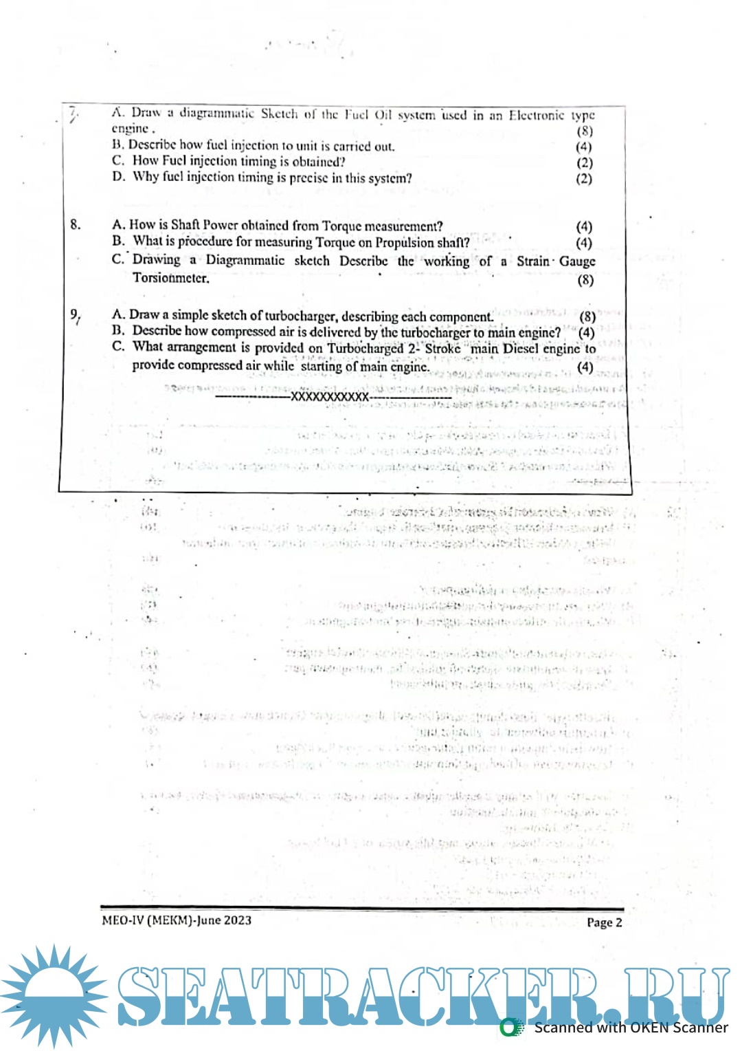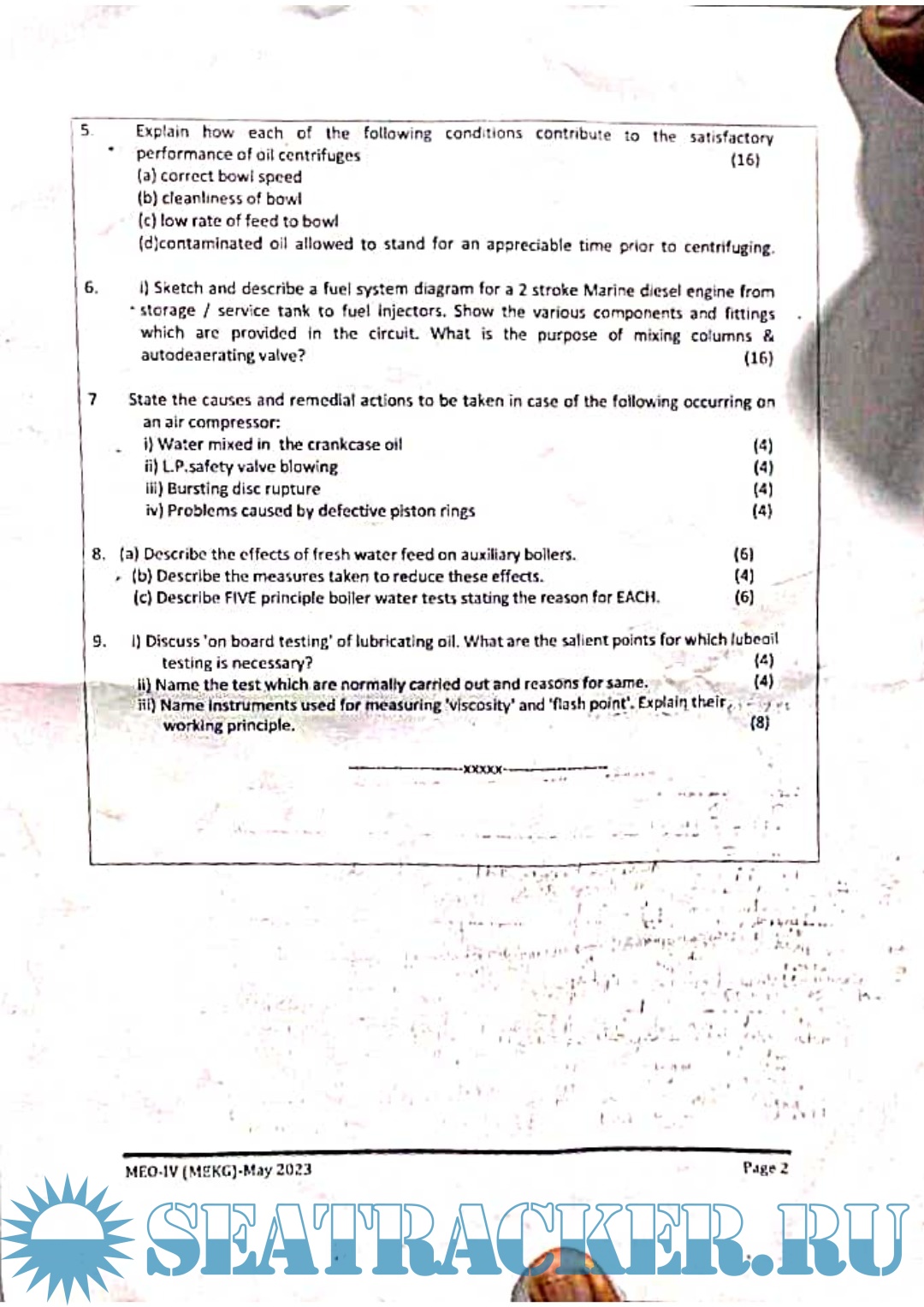 Question Paper Set for Marine Engineering Knowledge (M.E.K.) Steam (April 2023) for M.E.O. Class IV Examinations, India - D.G. Shipping, India [2023, JPEG]