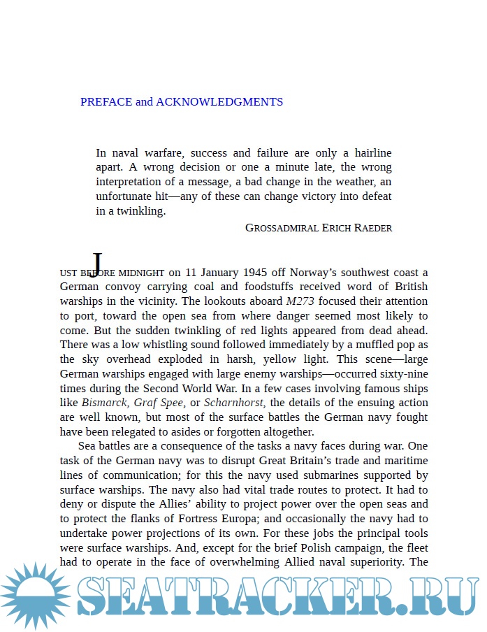 Year: 2011 Language: english Author: Vincent P. O'Hara Genre: History Publisher: Naval Institute Press Format: PDF Quality: eBook Pages count: 364 Description: The German Fleet at War relates the little-known history of the Kriegsmarine's surface fleet with a focus on the sixty-nine surface naval battles fought by Germany's major warships against the large warships of the British, French, American, Polish, Soviet, Norwegian and Greek navies. It emphasizes operational details but also paints a broad overview of the naval war. The book addresses the lack of information about the specifics of naval engagements in World War II and provides a database of naval engagements for comparison and analysis, but unlike most reference works, it has a continuous narrative and a theme. The result is a unique overview of the German and Allied navies at war that provides new appreciation of their activities and accomplishments.