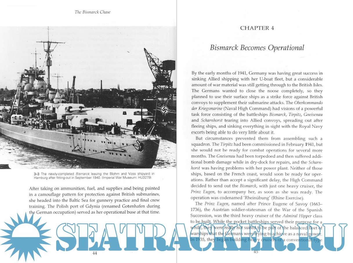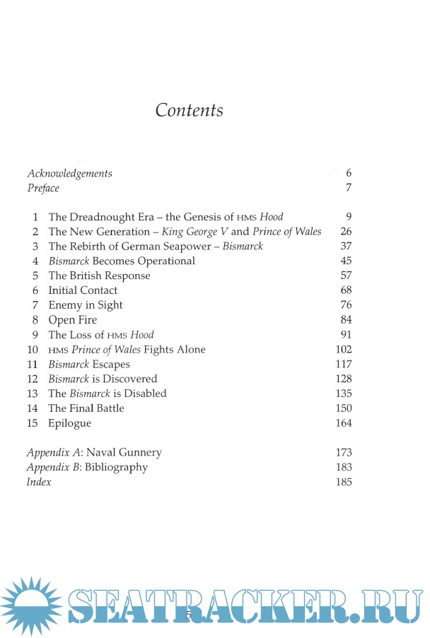The book covers the entire Bismarck campaign, from the genesis of the revived German Navy in the 1930s to the final sinking of the Bismarck three days after the loss of the Hood. The actions of both sides are comprehensively explained to give a clear and accurate account of the legendary campaign.