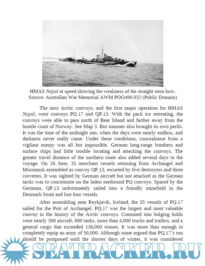 In Part Two of the book, the War took her from the coast of Madagascar, protecting convoys from Japanese submarines, to attacking Japanese positions and installations in Burma, Java and Sumatra, then to the Okinawa Campaign – the largest amphibious assault of the Pacific War – and finally to supporting attacks upon the Japanese mainland. She had the honour of being the first Australian Navy ship to berth in Tokyo Harbour after the surrender ceremony. HMAS Nepal survived all of this without a single loss to the crew.