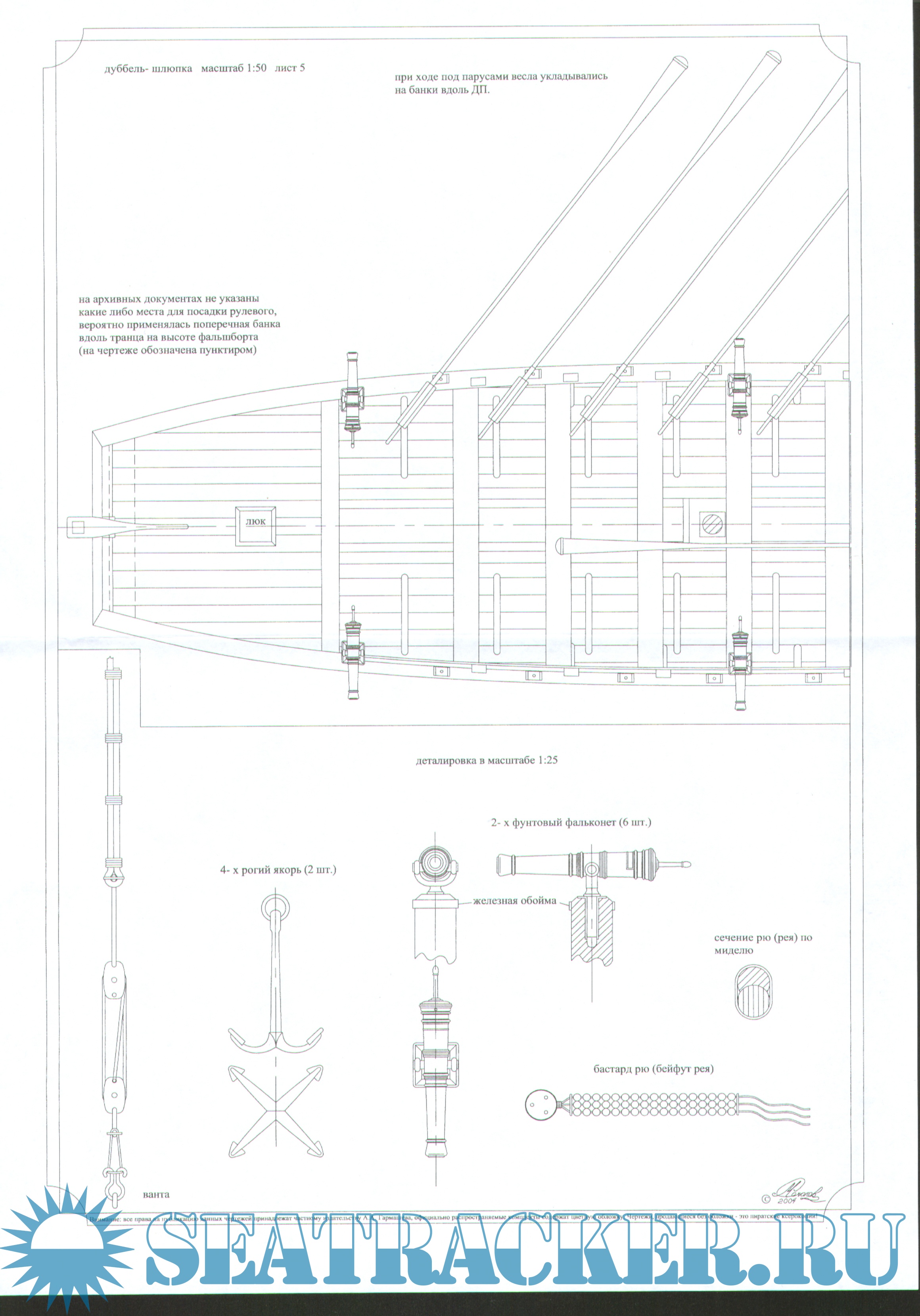 Чертежи архангельского 12-пушечного гукора "Кроншлот" 1736 год - Калмыеов и Шлычков…