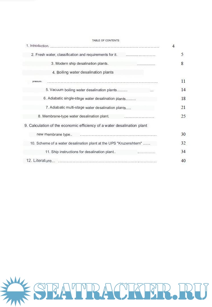 Description: The textbook discusses schemes and designs of ship water desalination plants, requirements for fresh water for sea vessels, execution of ship documentation for a water desalination plant, economic calculation when selecting an installation in the process of its modernization.
