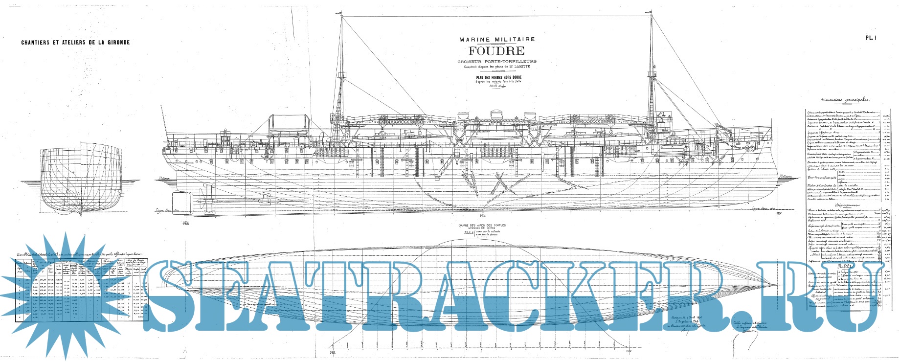 Архивные чертежи французского крейсера 2-го ранга DU CHAYLA 1895 год - нет данных [1895, Другой]