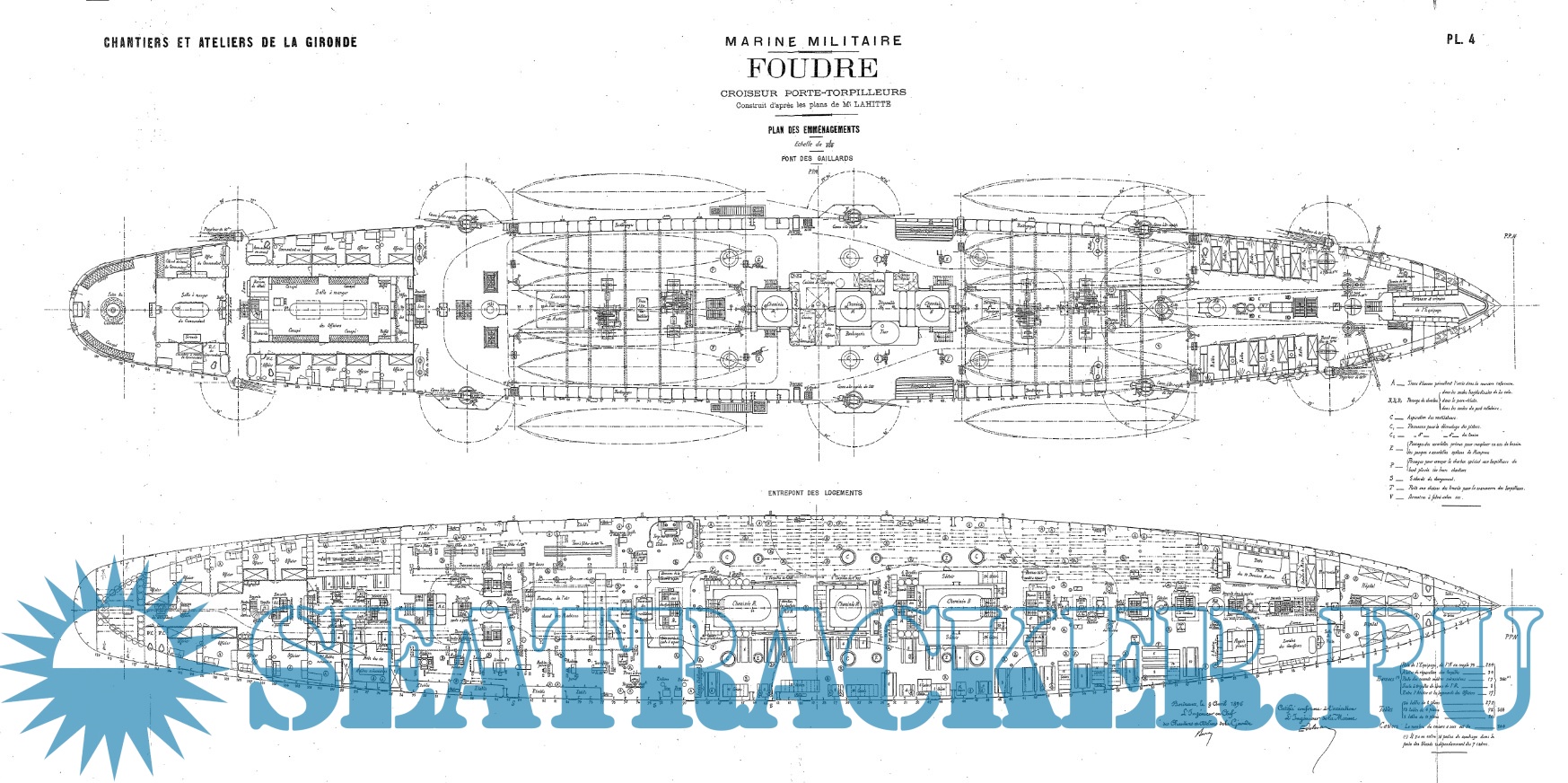 Описание: 30 листов архивных чертежей гидроавианосца FOUDRE 1895 год