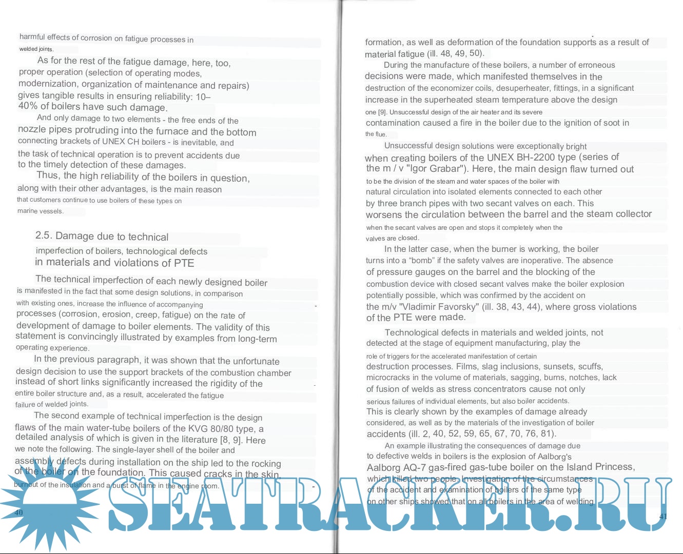 Description: The book considers the essence of damage to the elements of ship boiler plants, the main types of damages, the causes of their occurance. A new classification of damage to elements of boiler plants, methods for identifying damage, as well as a technique for assessing the technical condition of the equipment are presented.