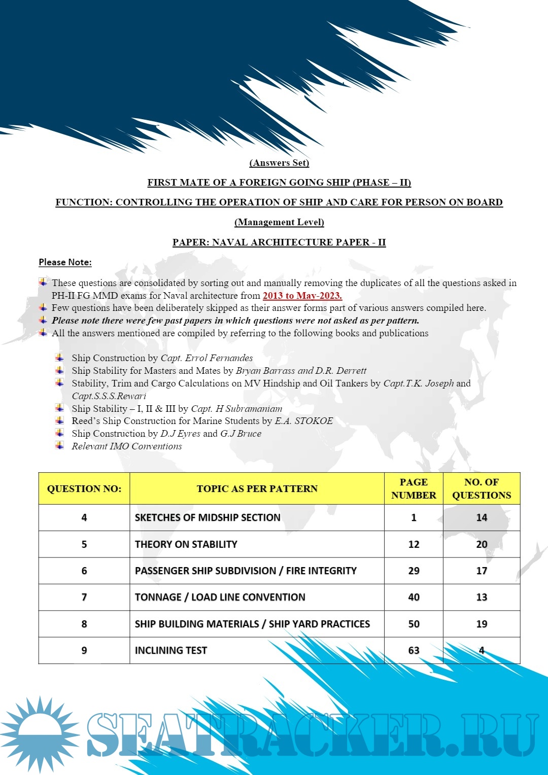 Naval Architecture Paper II: Theory Answers to Exam Questions of MMD India for Chief Mates F.G. Phase II