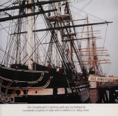 Description: The oldest commissioned warship afloat in the world still calls its birthplace—Boston—home. Launched in 1797 from Hartt's shipyard in the North End, Constitution was one of six original frigates that formed the core of the fledgling United States Navy in the 1790s. During the War of 1812, the ship defeated four British frigates and earned a legendary reputation in battle as "Old Ironsides." Today Constitution is America's "Ship of State." On special occasions each year, the ship undergoes turn-around cruises in Boston Harbor.