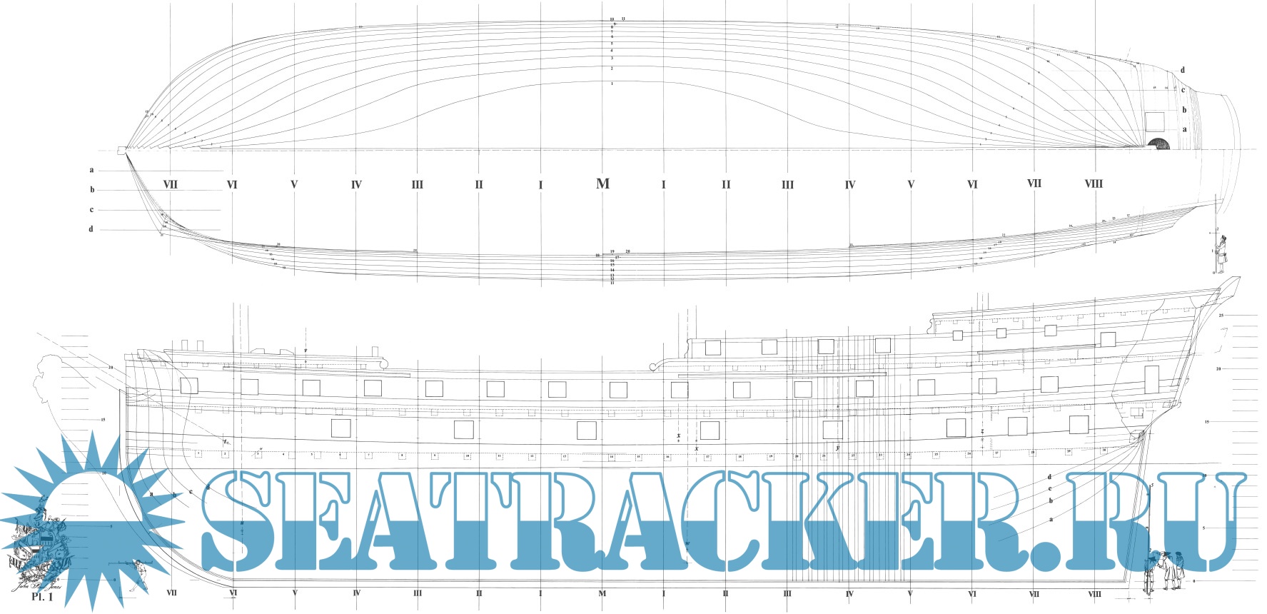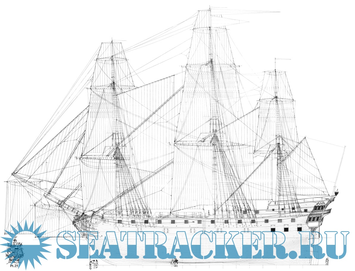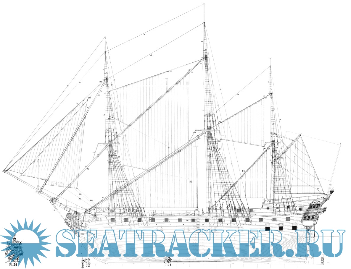 26 листов чертежей парусного корабля Bonhomme Richard (1779 год)Скриншоты