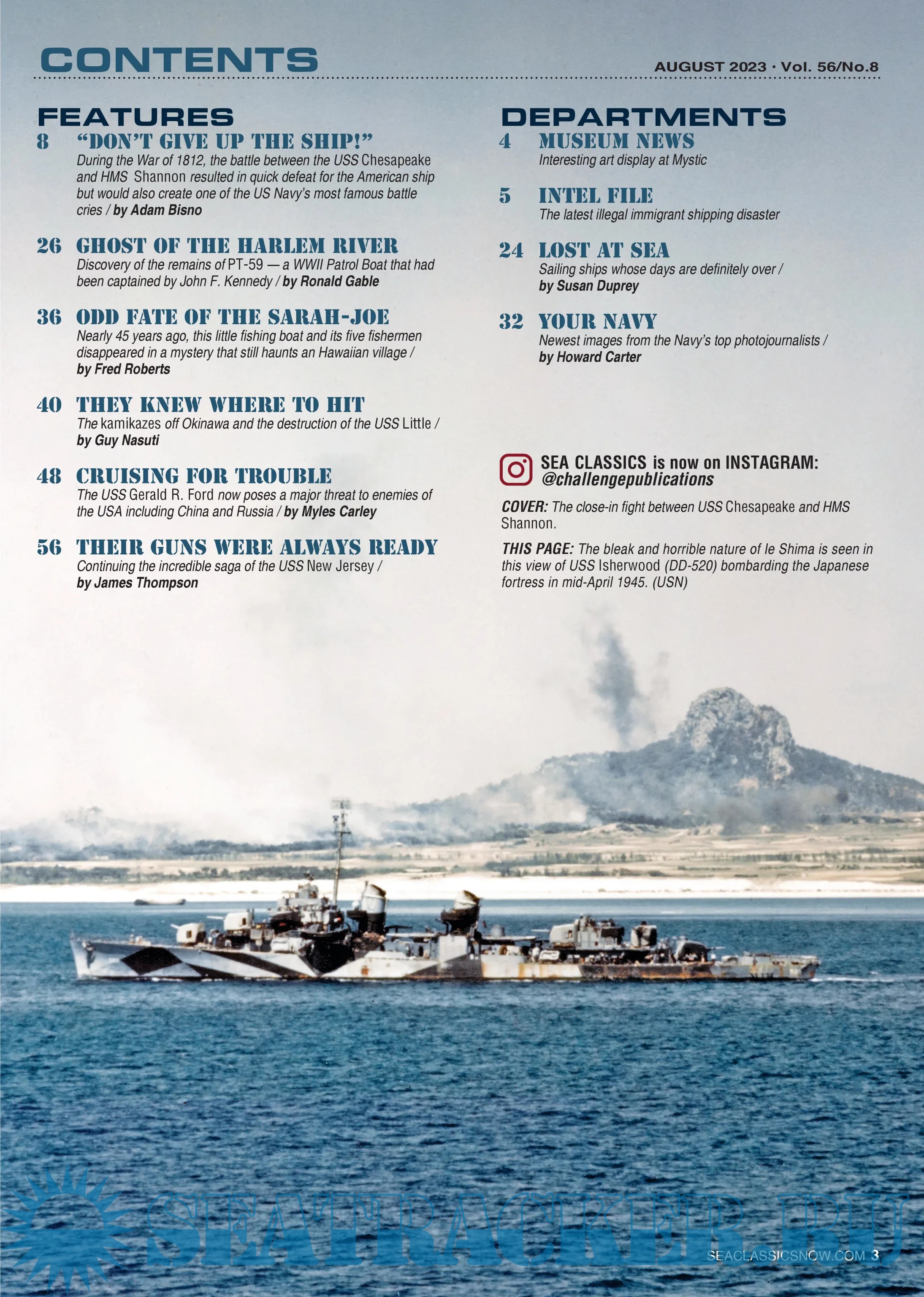 Sea Classics presents authoritative and insightful articles on all aspects of nautical history - from the great battles of WWII, to the historic commanders and admirals, to the magnificent clipper ships, to the deadly U-Boats, to the Civil War ironclads. Every month, Sea Classics brings you these types of articles… and much, much more...