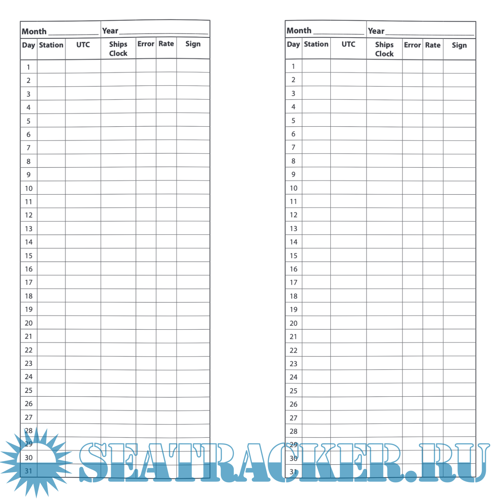 A logbook with tabulated pages for recording chron errors. One of a series of onboard logbooks produced by Witherby Publishing Group.