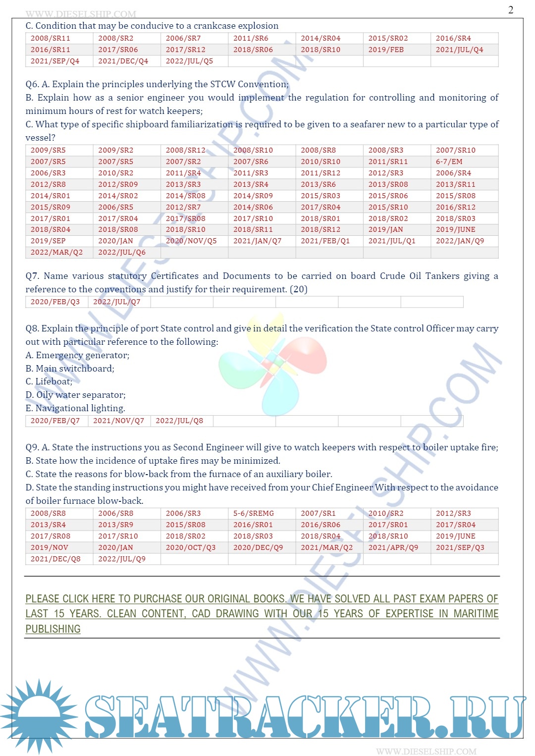 Year: 2023 Language: english Author: Dieselship Format: PDF Quality: eBook Pages count: 518 Description: M.E.O. Class II Question Paper set for Mercantile Marine Department (MMD), D.G. Shipping India Exams.
