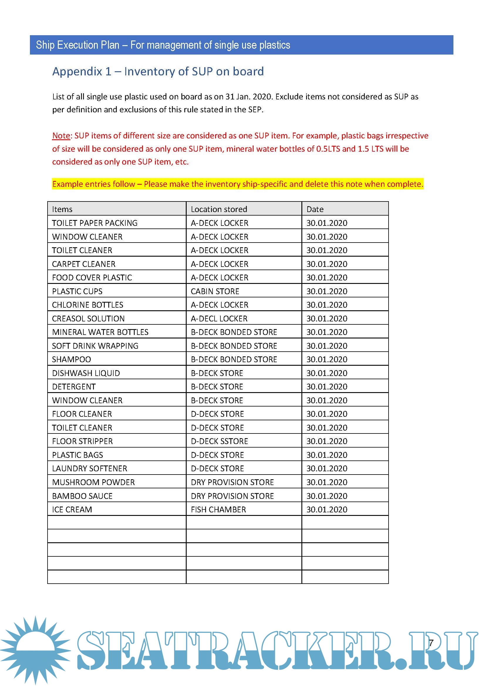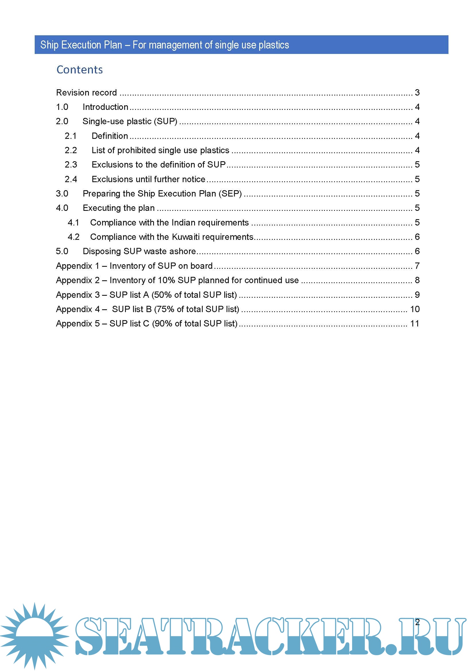 Description: Ship's Execution Plan for single use plastics Shipping Company template [model].