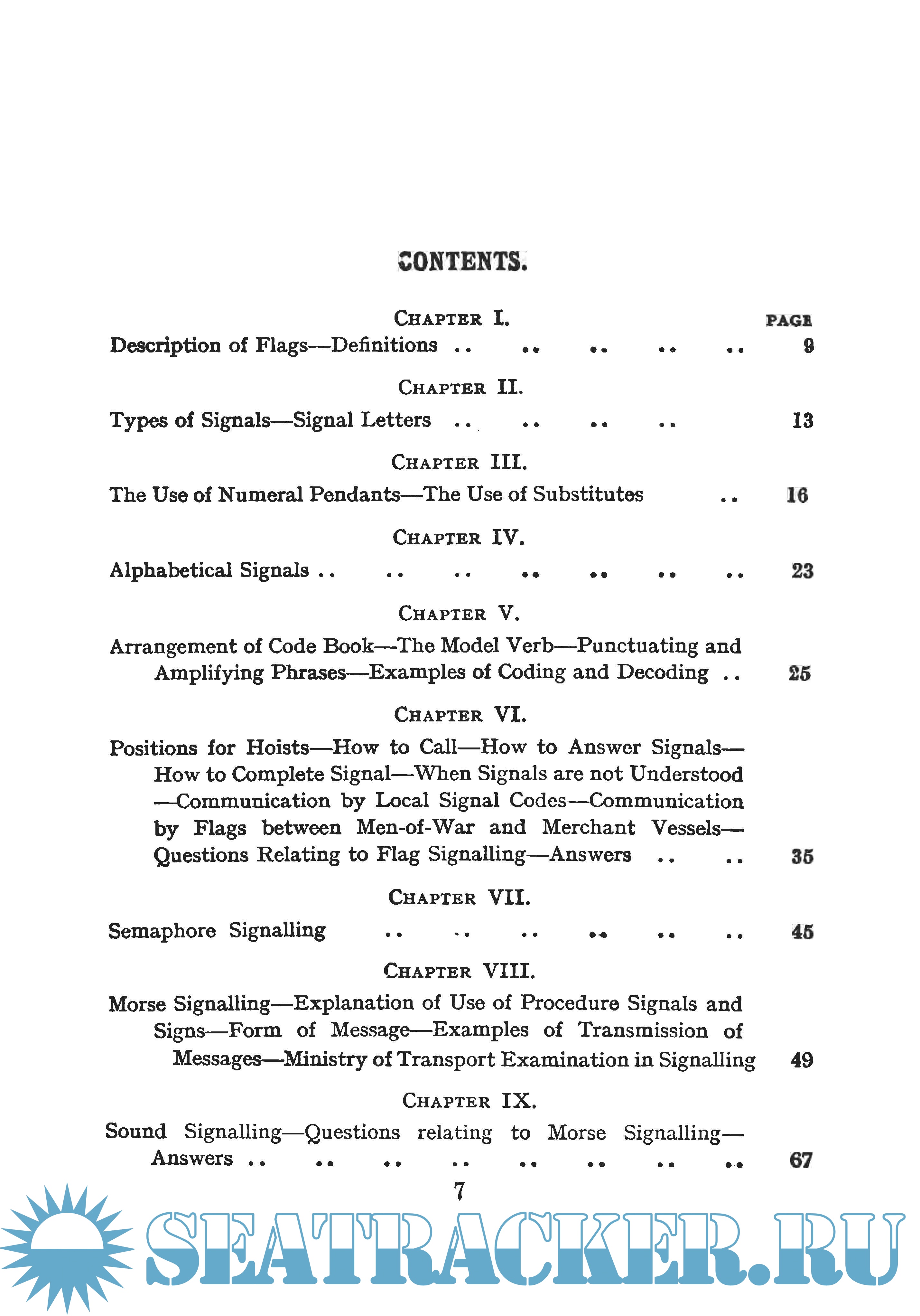 Brown’s Signalling contains all the instructions relative to visual and sound signalling, and it has been compiled in such a manner that it provides a progressive course of study for those who desire to acquire proficiency in modern signalling, the subjects being arranged in the order best suited for that purpose.