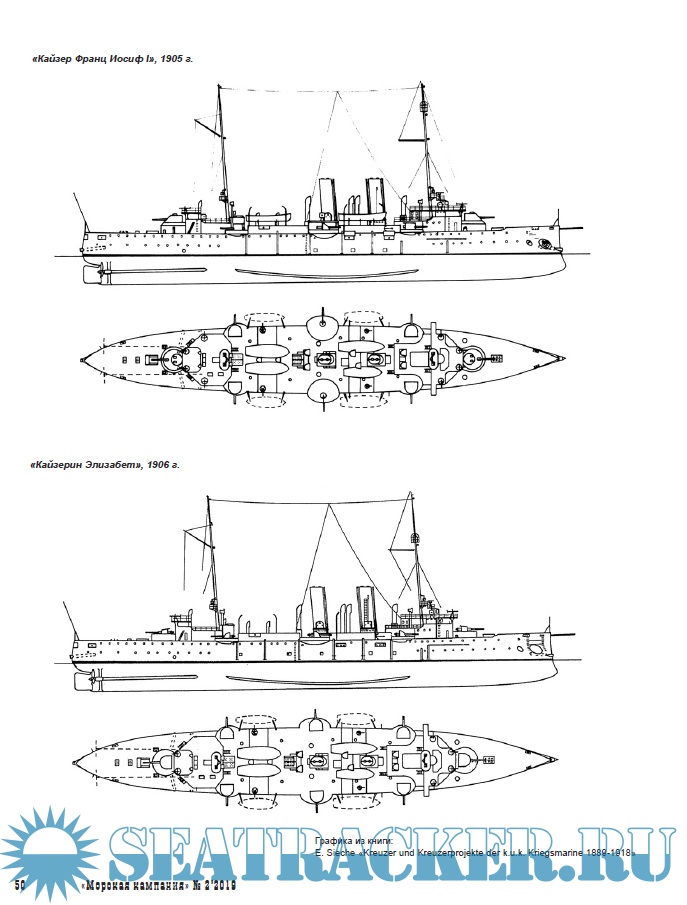 В качестве дополнительного материала номера предлагается статья об австро‑венгерских бронепалубных крейсерах типа «Кайзер Франц ИосифI».