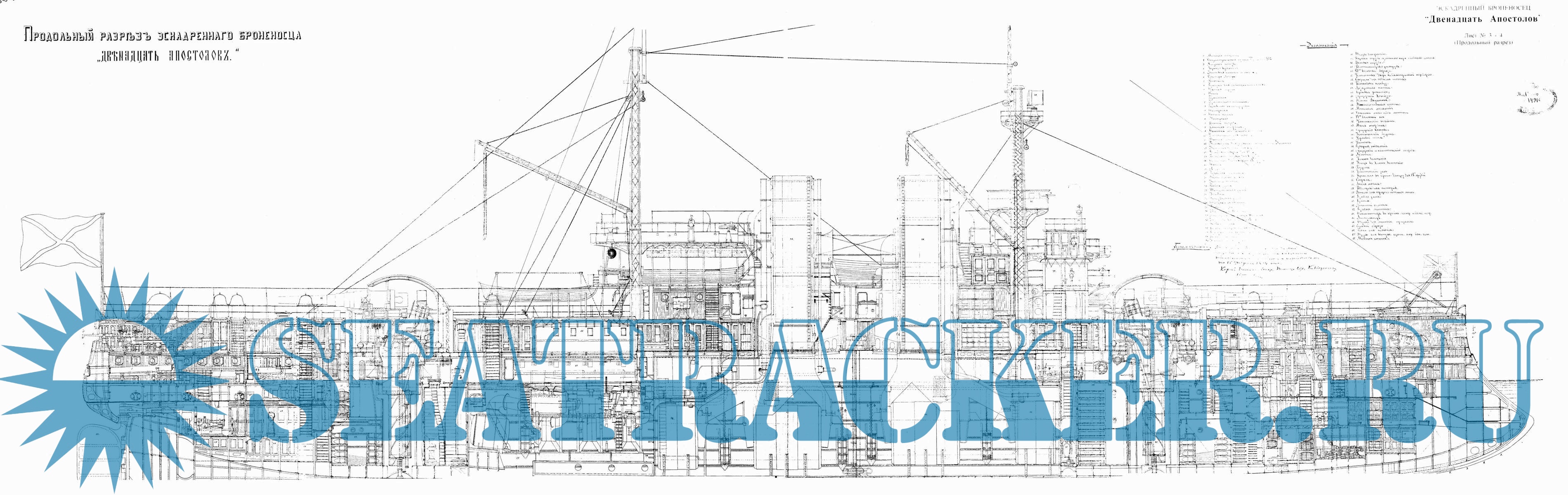 Архивные чертежи эскадренного броненосца ''Двенадцать апостолов'' 1890 год -…
