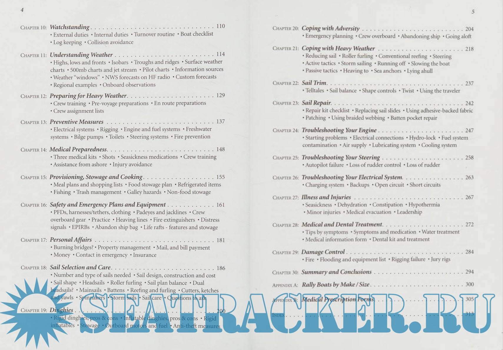 Year: 2001 Language: English Author: Hal Sutphen Genre: Handbook Publisher: Cruising Rally Association Edition: First ISBN: 978-0970456007 Format: PDF Quality: Scanned pages Pages count: 320 Description: A ocean cruising handbook, Advanced Bluewater Cruising provides a comprehensive guide for coastal cruising sailors wishing to make the step up to ocean cruising. In an easy-to-use format, Advanced Bluewater Cruising first outlines key differences between coastal and offshore cruising, offers some sound criteria for selecting a boat, and presents the pros and cons of major equipment options. Following chapters include such practical topics as voyage planning, fear as a guide to action, the skipper as leader, crew responsibilities and routines, watchstanding, managing personal affairs (mail, money, bills, emergency contacts), provisioning, stowage and cooking, medical preparedness and more. The weather and up-to-the-minute communications sections will help in interpreting weather systems and in using today's onboard communications tools to get the best forecast information. Sail selection, care and trim chapters will prove useful both before and during ocean passages. The first two-thirds of the book set forth practical steps to successful passagemaking under sail. The remaining third presents methods of coping with adversity in various forms: heavy weather, illness and injury, dismasting, fire, flooding, with specific sections on troubleshooting your engine, your steering and your electrical system. Illustrated, and with radio frequency lists, watchstanding schedule options, medical prescription information and more. Additional info: The book is intended primarily for newer bluewater cruising sailors. It will prove useful as well for more experienced offshore cruising sailors. It is a great presentation of all the fundamentals that every sailor should know before heading out on an offshore passage. And there is much up-to-the-minute information on this ever-changing subject.