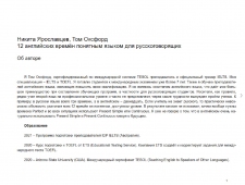 Описание: Я Том Оксфорд, сертифицированный по международной системе TESOL преподаватель и официальный тренер IELTS, профессионально преподаю английский с 2009 года. В процессе работы, я заметил, что 9 из 10 русскоговорящих учеников не умеют пользоваться двенадцатью временами английского языка. Даже прочитав правила, они не понимают, как это делать. Проблема в том, что стандартные объяснения, изложенные в учебниках, часто не адаптированы под родной язык ученика. В результате увидев предложение: I’m tired because I’ve been working hard this week (Я устал, т. к. работал усердно на этой неделе), студенты просто “бросают язык”, не понимая, почему здесь используется Present Perfect Continuous, а не Past Simple или Past Continuous. В этой книге я объясняю все 12 времён, учитывая особенности русского языка. Прочитав эту книгу, вы сможете понять, как они используются, и начнете говорить правильно. А самое главное – лучше понимать носителей.