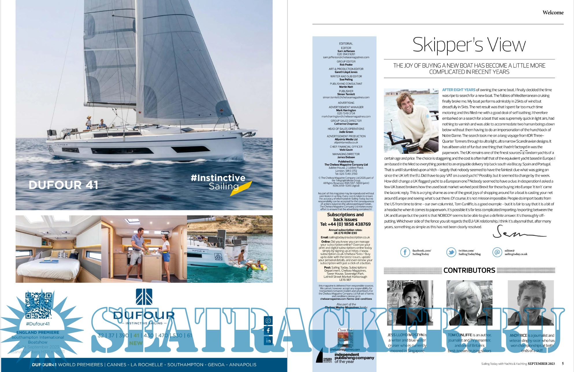 Description: Sailing Today is the magazine for hands-on cruising sailors whose love of sailing takes them around the British Isles, across the Channel and further, to the blue waters of the wider world.Offering a wealth of practical advice and a dynamic mix of in-depth boat, gear and equipment news, Sailing Today is written cover to cover by sailors, for sailors. Since its launch in 1997, the magazine has sealed its reputation for essential sailing information and advice.Since we launched in 1997 we have sealed our reputation as THE magazine for essential sailing information and expert advice.ST is written by sailors for sailors, from our new and used boat tests, to our step by step practical articles and in-depth gear tests, or our inspiring cruising tales from home and abroad.Whatever you want to know – from which GPS to buy, or the best way to install central heating – Sailing Today provides the best answers.With our fantastic on-board gear tests, the latest boat tests and regular advice about seamanship and navigation, we deliver practical back-up for those who enjoy using their boats and want to get the best from them.