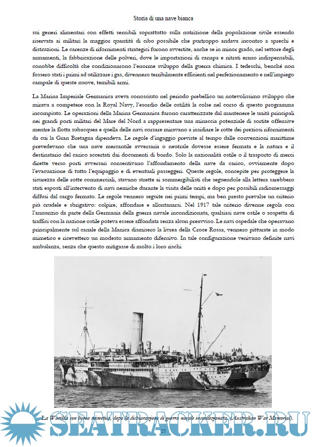 Year: 2021 Language: italian Author: Vincenzo Giacomo Toccafondi Genre: History Format: PDF Quality: eBook Pages count: 303 Description: Partendo da una manciata di foto scattate su una nave ospedale l'autore ha iniziato un lungo ed approfondito lavoro di ricerca. Da Roma a Trieste, da Glasgow a Napoli la caccia a testimonianze, documenti, immagini e notizie si è allargata fino a coinvolgere la corrispondenza con studiosi e prestigiose istituzioni storiche australiane, britanniche e statunitensi. L’opera che ne è nata ricostruisce la storia della Nave nei suoi vari ruoli, con particolare attenzione all’opera di unità ospedaliera svolta nella Grande Guerra, nella Guerra d’Etiopia, nella Guerra Civile Spagnola e nel Secondo Conflitto mondiale. I trent’anni della vita operativa della nave hanno attraversato nodi cruciali della storia novecentesca trasportando sui suoi ponti donne e uomini che a questa storia hanno preso parte nel ruolo più difficile e meritorio: il soccorritore.