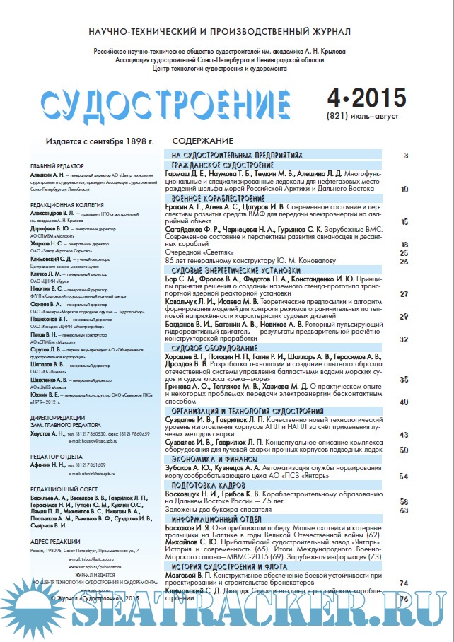Описание: В журнале публикуются статьи ученых и специалистов на темы, связанные с проектированием, постройкой, ремонтом, модернизацией и утилизацией военных кораблей, гражданских судов. Регулярно выходят в свет работы, посвященные организации и технологии судостроительного производства, проектированию верфей и доков, новым судостроительным материалам. Большое внимание уделяется вопросам судовой энергетики и новым разработкам в области морской техники.