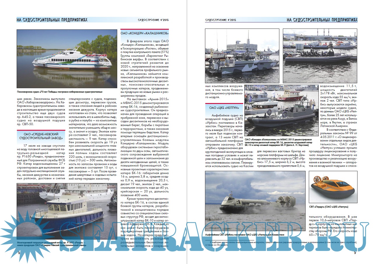 Год выпуска: 2015 Язык: русский Автор: Горелов В.В. (зам. главного редактора) Жанр: Периодическое издание (журнал) Издание: 2015-04 Формат: PDF Качество: Изначально компьютерное (eBook) Количество страниц: 84 Описание: В журнале публикуются статьи ученых и специалистов на темы, связанные с проектированием, постройкой, ремонтом, модернизацией и утилизацией военных кораблей, гражданских судов. Регулярно выходят в свет работы, посвященные организации и технологии судостроительного производства, проектированию верфей и доков, новым судостроительным материалам. Большое внимание уделяется вопросам судовой энергетики и новым разработкам в области морской техники.