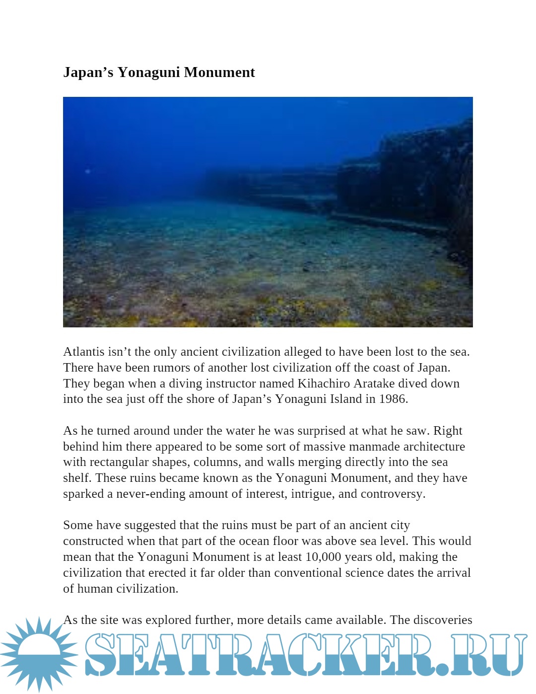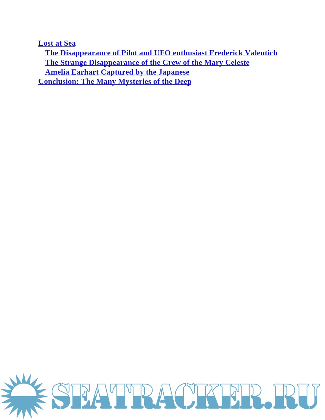 Within these chapters you will explore many unexplained underwater mysteries including: