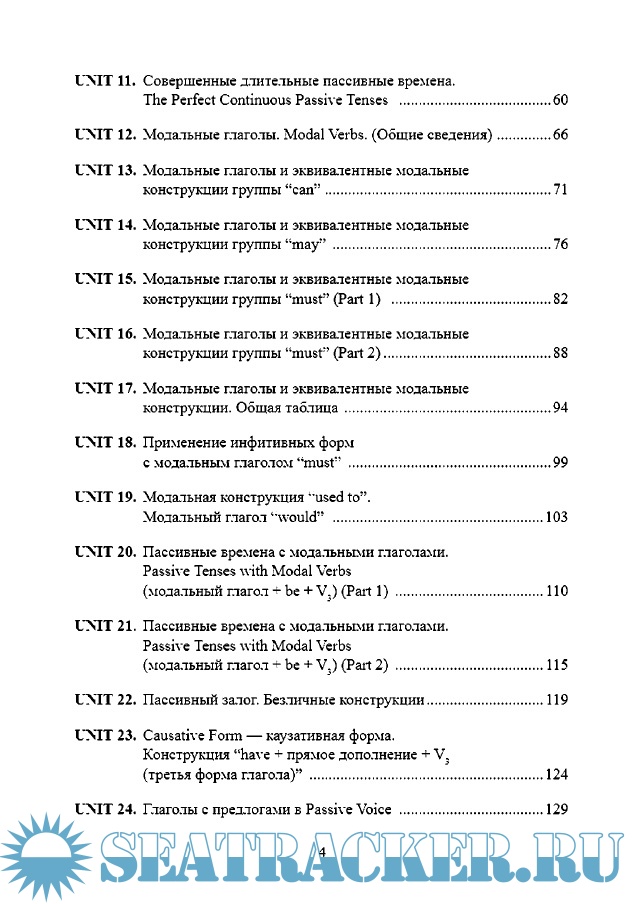 Описание: Книга «Времена глаголов. Действительный залог» состоит из 32 параграфов, каждый из которых представляет определенный раздел грамматики. В этом учебном пособии вы познакомитесь с временами глаголов, действительным залогом (Active Voice). В пособии представлены параграфы для поэтапного изучения неправильных глаголов; статичные глаголы (глаголы состояния); объясняется, как сказать о будущем по степени вероятности совершения действия; вопросительные местоимения; конструкции «have been to», «have gone to»; «have been in»; таблицы, объясняющие различия применения многих одинаково звучащих на русском языке слов и многое другое. В уроках доступно объясняются грамматические правила с использованием таблиц. В каждом разделе даны упражнения с заданиями и примерами по их выполнению.