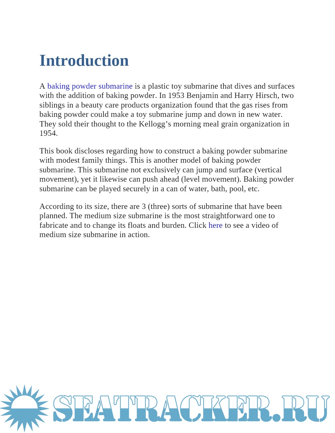 This way readers can analyze, compare and hopefully find and create their own design, which could be even better. This submarine science toy is using baking powder as 'fuel'. Using origami of plastic paper and polystyrene, this submarine looks like a real submarine.