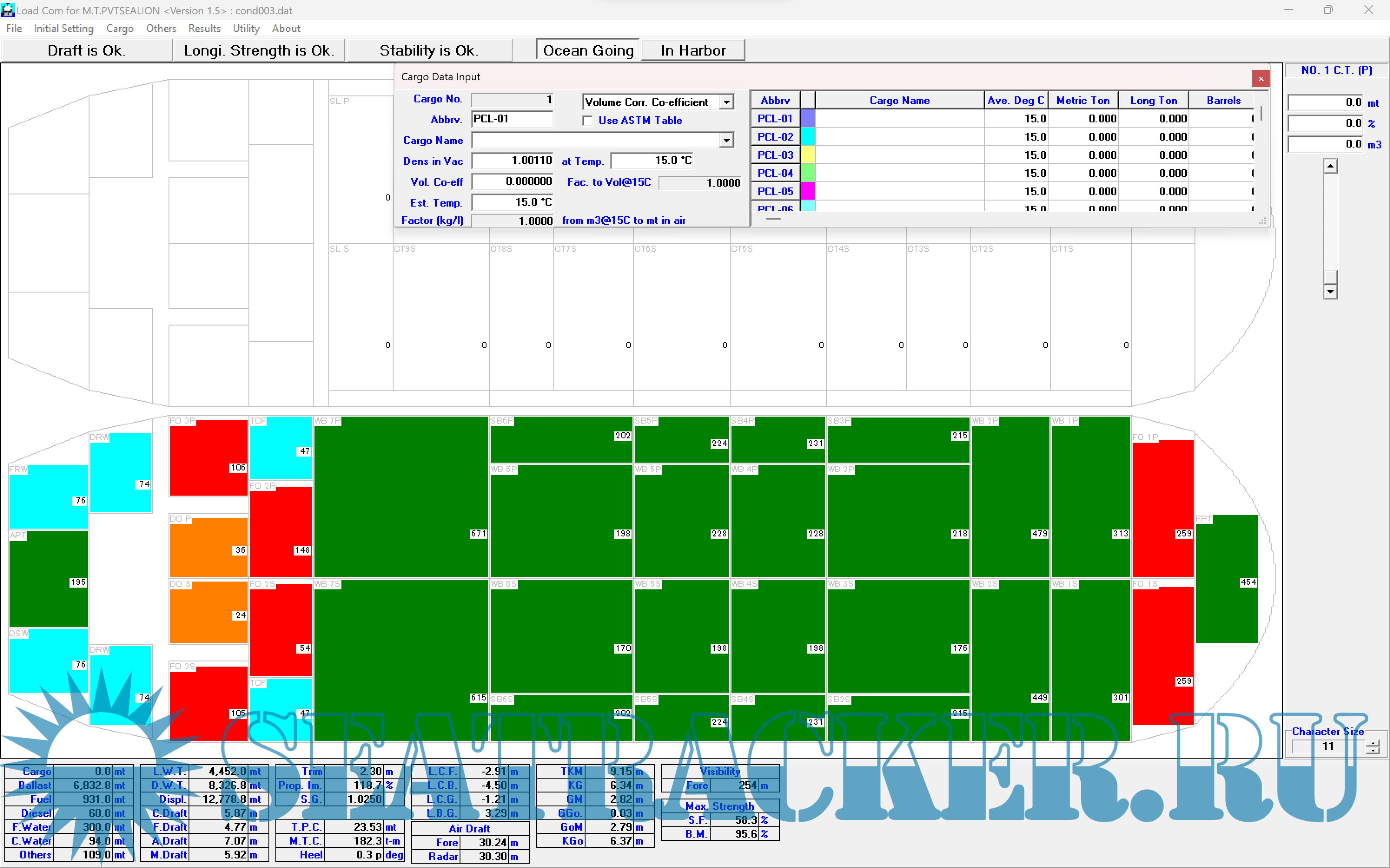 Ship Manager 88 v.4.52.2.14 - Loading program for 13000 DWT Oil/Chem Tanker - Techmarine Co. Ltd…