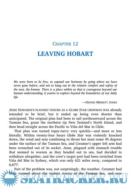 Travel with Creamer as Globe Star sails around the perilous Horn, across the dangerous and tumultuous Tasman Sea, and into an active war zone. Sail around the world with a man who was taken prisoner by an idea, a man obsessed with proving a point, and who would let neither 40-foot waves nor fractious crewmembers deter him.