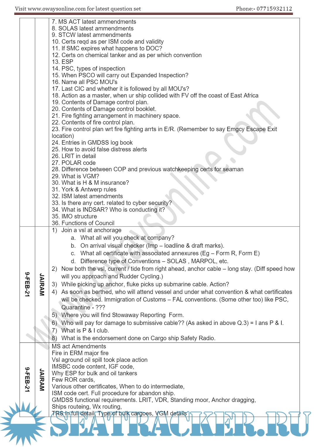 Description: Orals Question Bank for ASM (Advanced Shipboard Management) / Master's Mercantile Marine Department (MMD), India Examinations.