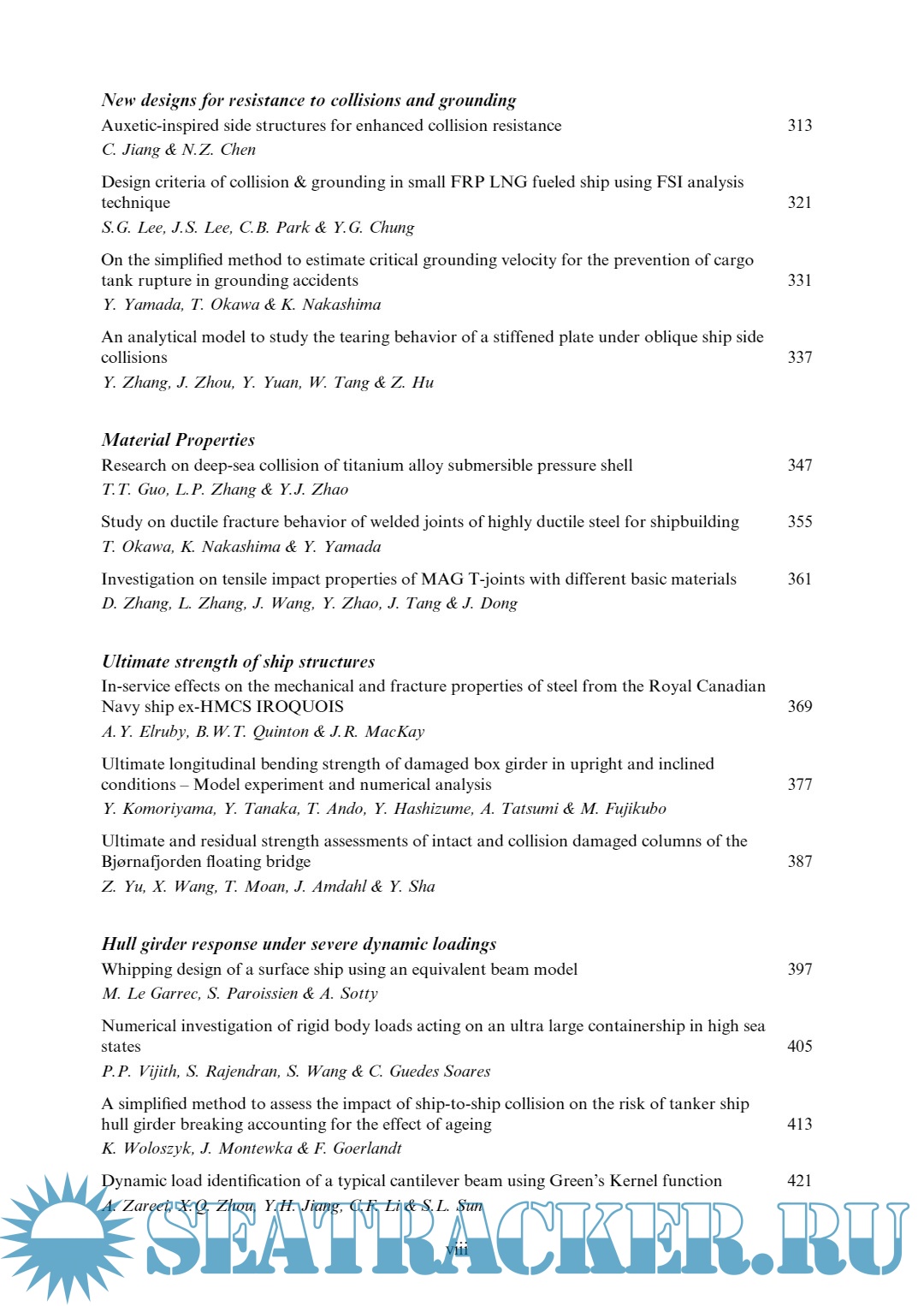 Year: 2023 Language: english Author: Herve Le Sourne, C. Guedes Soares Genre: Textbook Publisher: CRC Press/Balkema Edition: 1 ISBN: 978-1-032-61130-3 Format: PDF Quality: eBook Pages count: 517 Description: This book presents the proceedings of the 9th International Conference on Collision and Grounding of Ships and Offshore Structures held in Nantes, France between 11 and 13 September 2023, under the theme “Advances in the Collision and Grounding of Ships and Offshore Structures”. It occurs in 2023 instead of 2022, which would be the normal periodicity because COVID has created difficult conditions to keep the established periodicity. The history of this series of conferences on Collision and Grounding of Ships and Offshore Structures started a little more than twenty years ago, and previous conferences have been held in San Francisco, USA in 1996, in Copenhagen, Denmark in 2001, in Tokyo, Japan in 2004, in Hamburg, Germany in 2007, in Helsinki, Finland in 2010, in Trondheim, Norway in 2013, in Ulsan, South Korea in 2016 and Lisbon, Portugal in 2019. Participants are drawn from the industrial and academic sectors and are typically naval architects, marine engineers, and scientists from all over the world, who at ICCGS find a forum that provides an ideal setting to share experiences and be informed of the state-of-the-art developments in this area of expertise, providing the atmosphere for many fruitful discussions. For the first time in its history, the ICCGS Conference is organized in Nantes, France, where Institut Catholique d’Arts et Métiers (Icam, School of Engineering) has taken responsibility for the logistics and organization of the Conference, in collaboration with the Centre for Marine Technology and Ocean Engineering (CENTEC), Instituto Superior Técnico (IST), University of Lisbon.