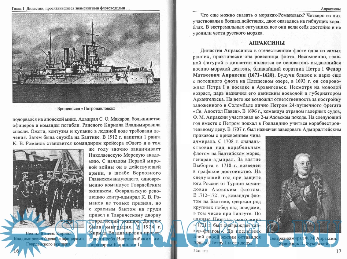 Описание: Книга контр-адмирала Ю.Л.Коршунова - это книга о морских династиях России, о семьях, в которых профессия военного моряка стала традицией, передающейся от отца к сыну, от сына к внуку. В ней приведены биографии более чем пятисот адмиралов, генералов и офицеров отечественного флота. В большинстве случаев они публикуются впервые. Главная цель книги - рассказать о патриотизме русского морского офицерства, о его беззаветной преданности Родине и верности своей профессии.