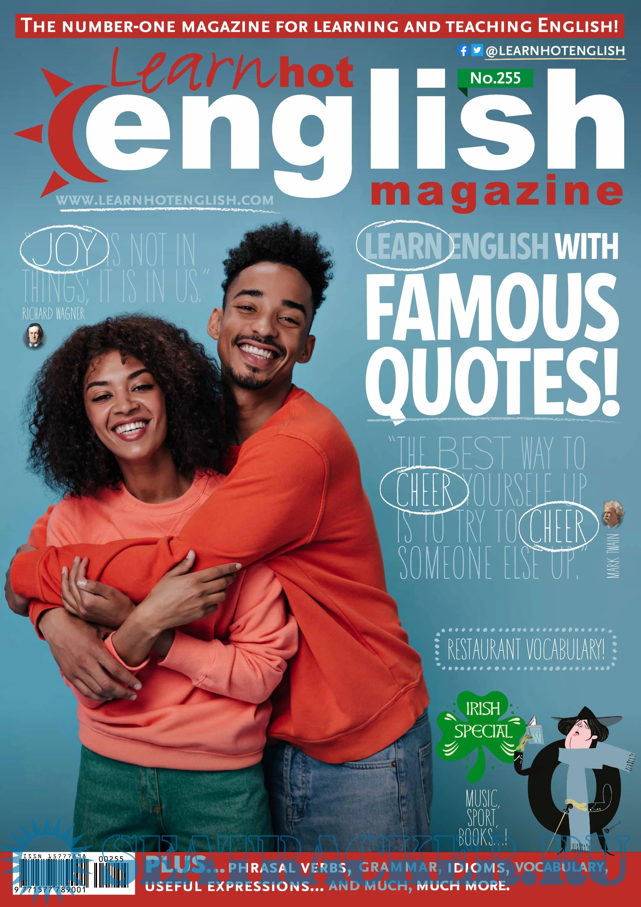 Description: Great news! The latest issue of Hot English (255) is out now! This month: 26 famous quotes to help you learn English! Plus much more...