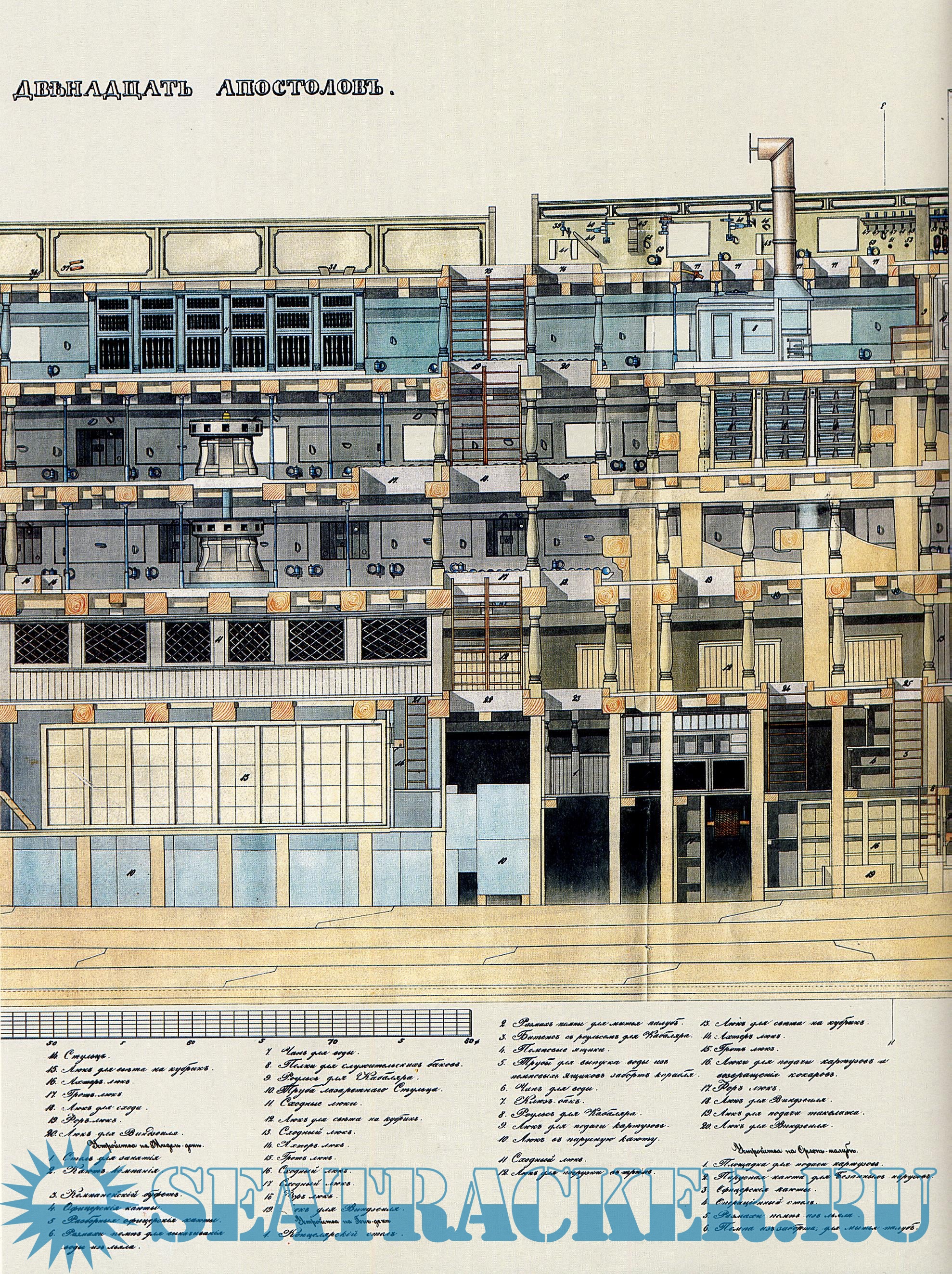 Чертежи 120-пушечного корабля "Двенадцать Апостолов"