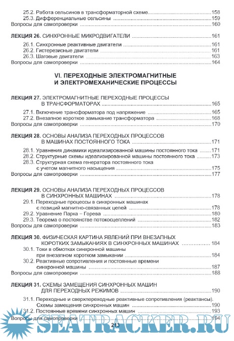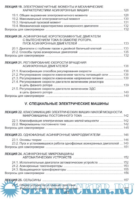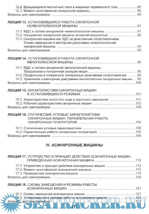 Дан подробный вывод уравнений равновесия напряжений приве­денного трансформатора, показаны наиболее часто применяемые схемы замещения. Рассмот­рены вопросы работы трансформаторов в трехфазных электрических сетях, включая несим­метричные режимы. Охарактеризованы особенности одно- и трехфазных автотрансформато­ров, а также сварочных трансформаторов.