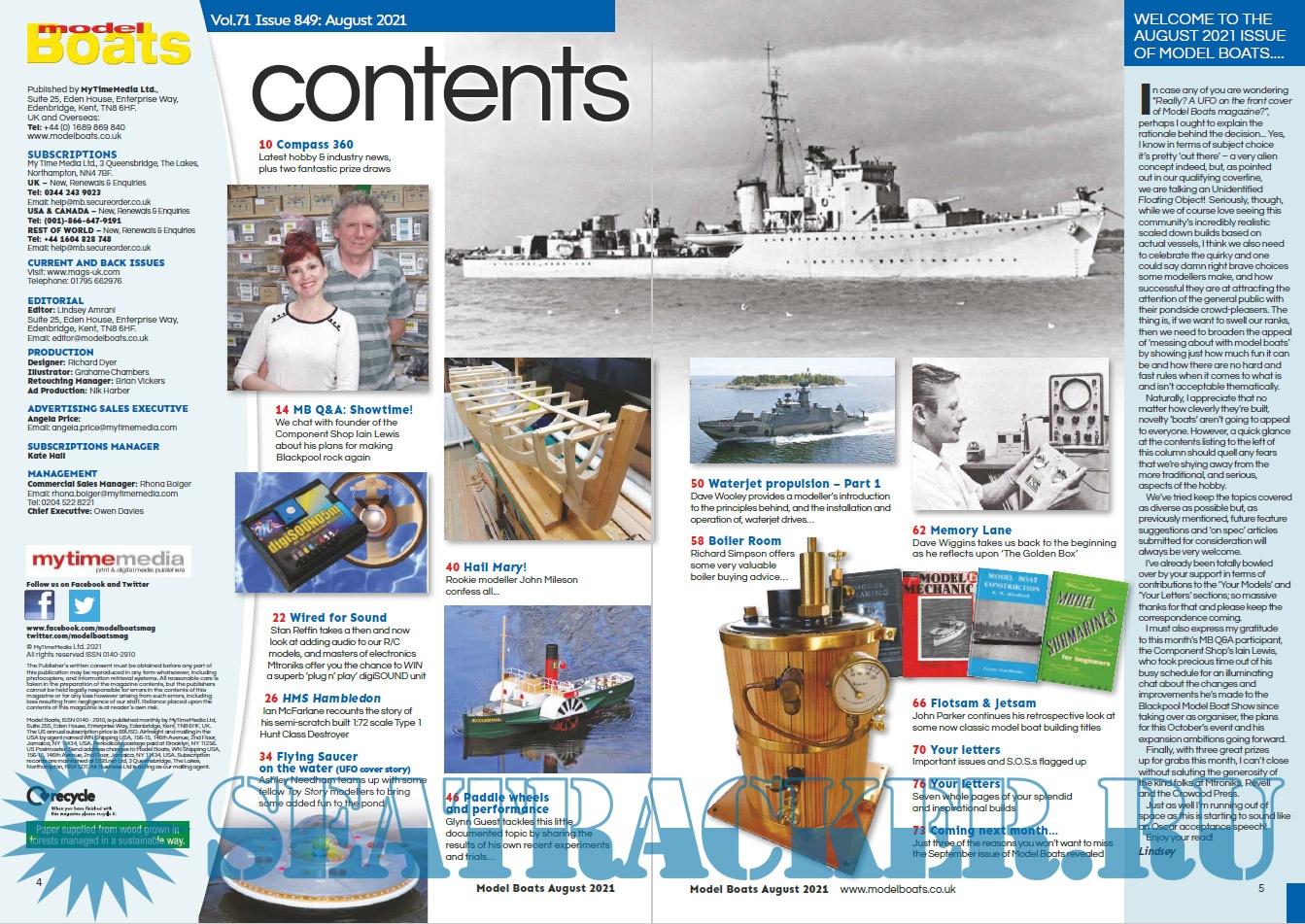 Description: Model Boats magazine is a practical and informative read for those with a love for the hobby. It covers the latest news and views from the various clubs and associations around the country, useful hints, tips and step by step guides for those interested in the art of constructing a model boat as well as tests and recommendations of new boats and tools. Floating along behind these are great special features examining in depth different models from narrowboat to destroyer!