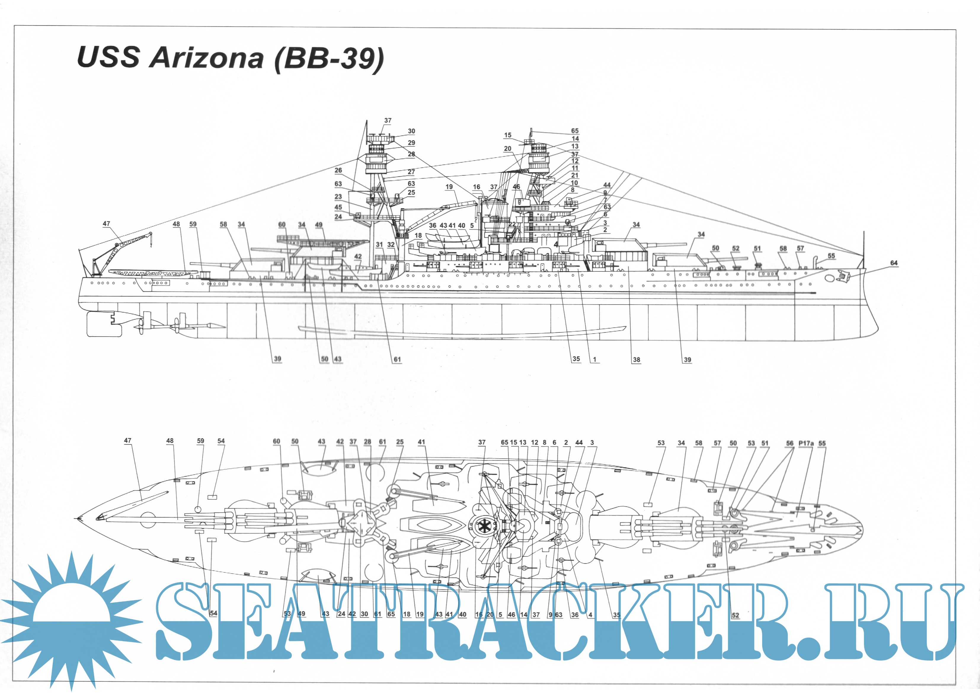 Линейный корабль США USS "Arizona" BB-39 (модель из бумаги)