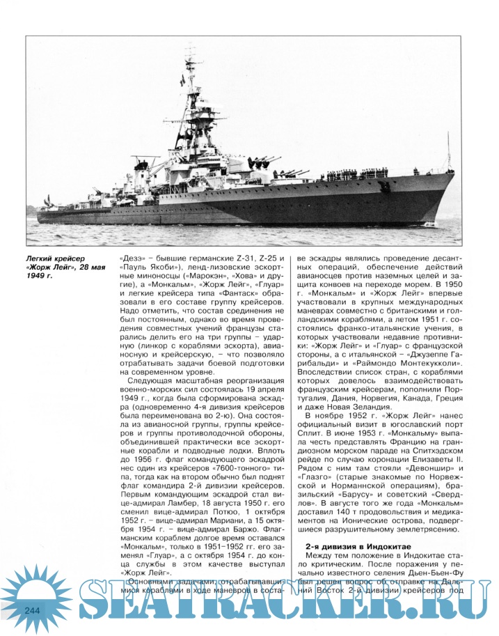 А ведь благодаря планомерной и целенаправленной кораблестроительной политике крейсерские силы Франции вступили в войну в превосходном состоянии все корабли были современными (не старше 15 лет), а экипажи хорошо подготовленными. Мало того, именно легкие крейсера типа Дюге-Труан, на которых вся артиллерия главного калибра впервые размещалась линейно-возвышенно в башенных установках, стали законодателями мод, определив облик этого класса кораблей на четверть века вперед. Но, как известно, воюют не механизмы, а люди, и даже совершенный корабль обречен на бездействие или бесславную гибель, если им управляют трусы и иуды. Историки не зря оценивают действия лягушатников во Второй Мировой как военно-морское предательство самым громким подвигом французского флота стало самозатопление в Тулоне, а его великолепные крейсера воевали не столько против немцев и итальянцев, сколько против Союзников, и самые тяжелые потери понесли, сражаясь на стороне Гитлера, 8 ноября 1942 года под Дакаром Примоге был уничтожен огнем американского крейсера Бруклин, а три года спустя американская же палубная авиация потопила и героя Ко-Чанга Ламот-Пике.