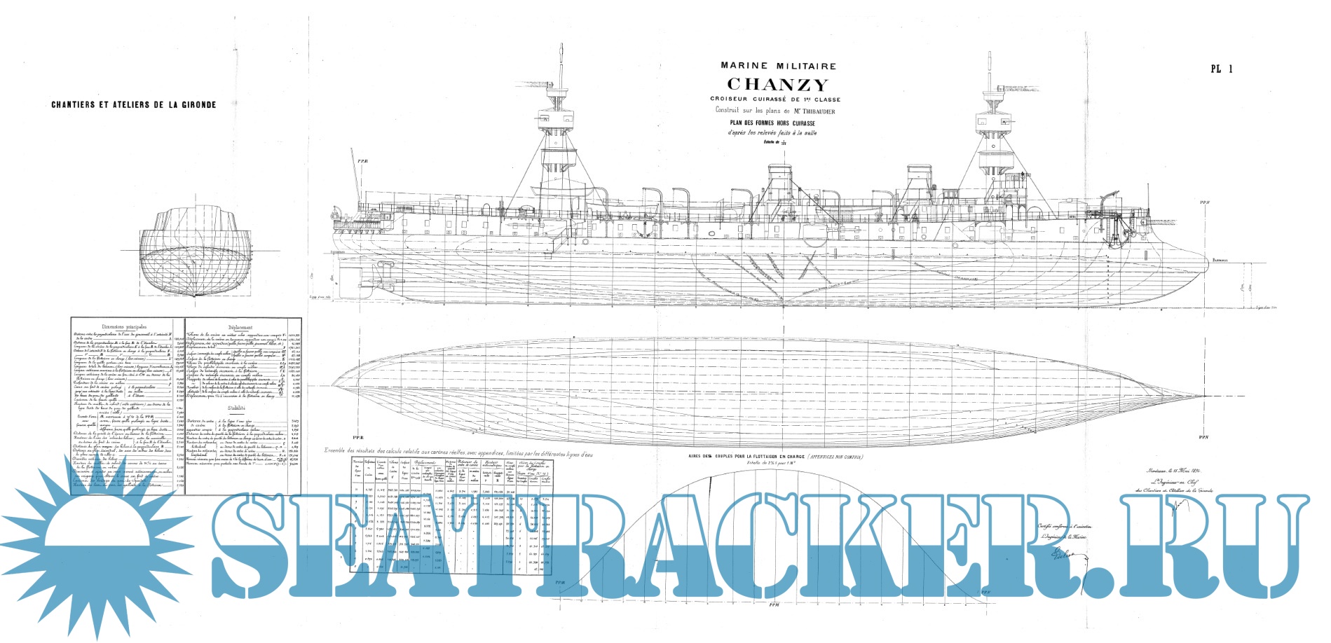 Архивные чертежи крейсера 1-го ранга CHANZY (Франция) 1894 год