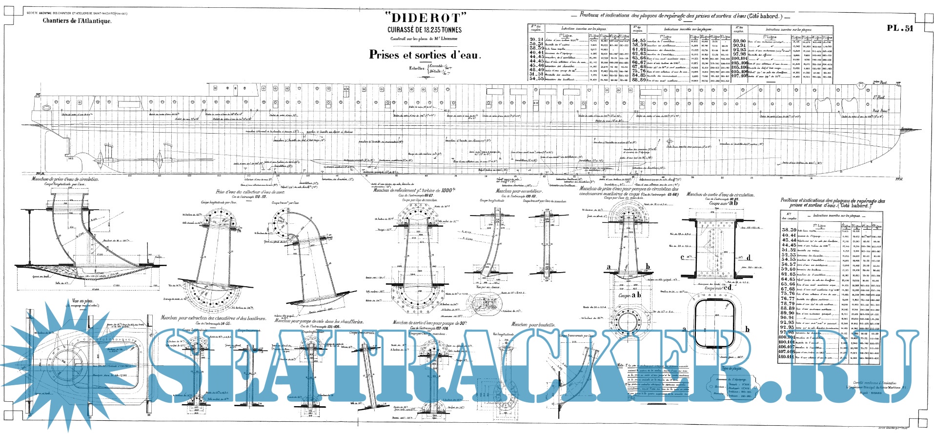 Описание: 57 листов архивных чертежей эскадренного броненосца DIDEROT (Франция) 1909 год