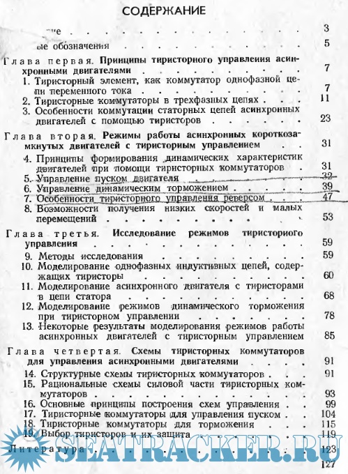 Описание: В книге рассматривается управление асинхронными короткозамкнутыми двигателями при помощи тиристорных коммутаторов. Изложены принципы и особенности такого управления и применения тиристоров для формирования пусковых, тормозных и некоторых специальных режимов бесконтактного асинхронного привода. Основное внимание уделено динамике асинхронного привода с учетом электромагнитных переходных процессов и математическому моделированию как основному методу анализа и исследования. Рассматриваются также принципы построения силовой части тиристорных коммутаторов для осуществления различных режимов управления асинхронными двигателями, проводится сравнительная оценка ряда схем коммутаторов и описываются некоторые из них. Приводится материал экспериментального исследования различных режимов привода и схем коммутаторов.