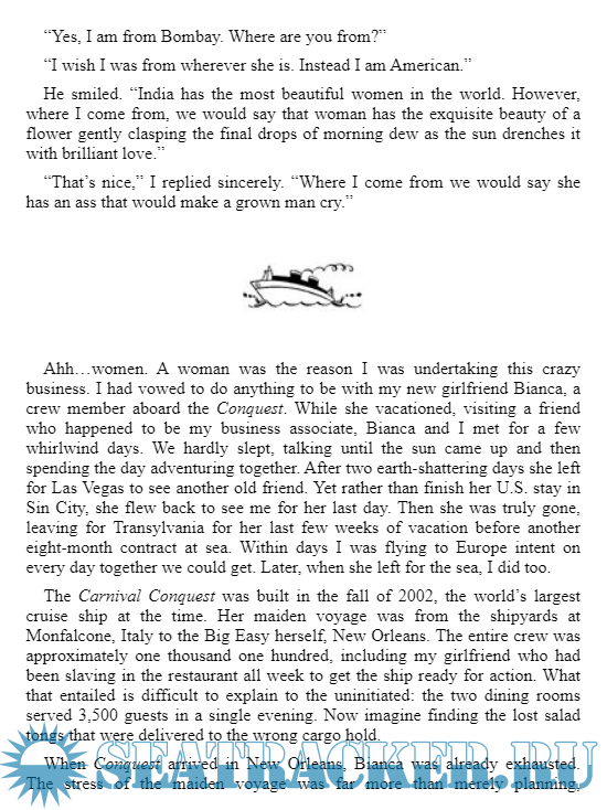 Year: 2008 Language: english Author: Brian David Bruns Publisher: Brian David Bruns ISBN: 9781932361704 Format: EPUB Quality: eBook Pages count: 384 Description: In Cruise Confidential, Brian David Bruns spills the dirt — or in this case, the dirty water — on those romantic, fun-filled vacations at sea. His hilarious chronicle of the year he spent working for Carnival Cruise Lines takes readers down into the areas where the crew works and lives, leaving readers gasping with laughter as they’re assaulted nonstop with events that range from the absurd to the utterly bizarre. Stewards fighting over food. Cutlery allowances and other nonsensical rules. What the crew calls those onboard (no, it’s not “passengers”). And of course, the sex. An abundance of ready, willing, and able bodies eager for action on a vessel replete with nooks and crannies leads to love in some mighty strange, and seemingly impossible, places. Breezy, entertaining, and informative, Cruise Confidential is essential reading for those planning a cruise or for anyone who just needs a good laugh. Additional info: This is a 4-book series, released individually so each one could be mapped to its own ISBN. Other books in the series: