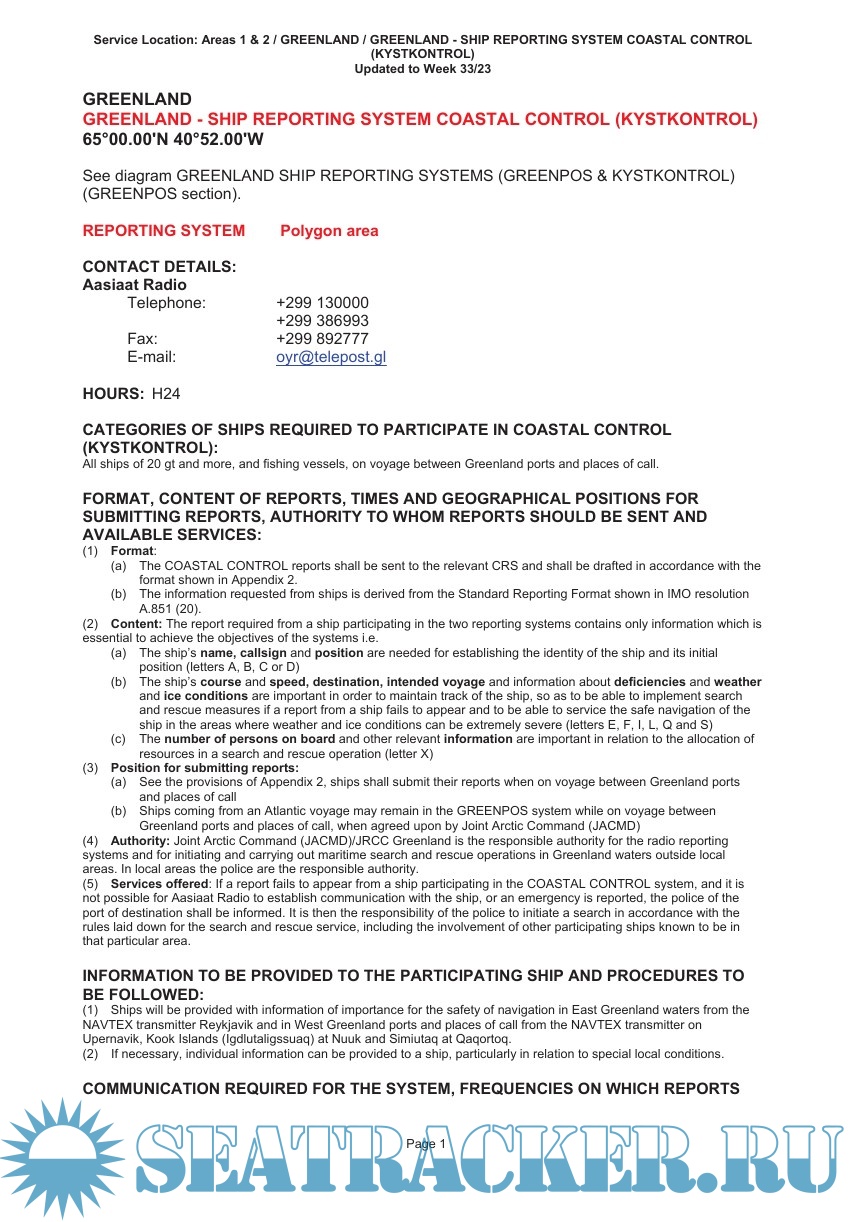 • Vessel Traffic Service information, contact details and procedures
