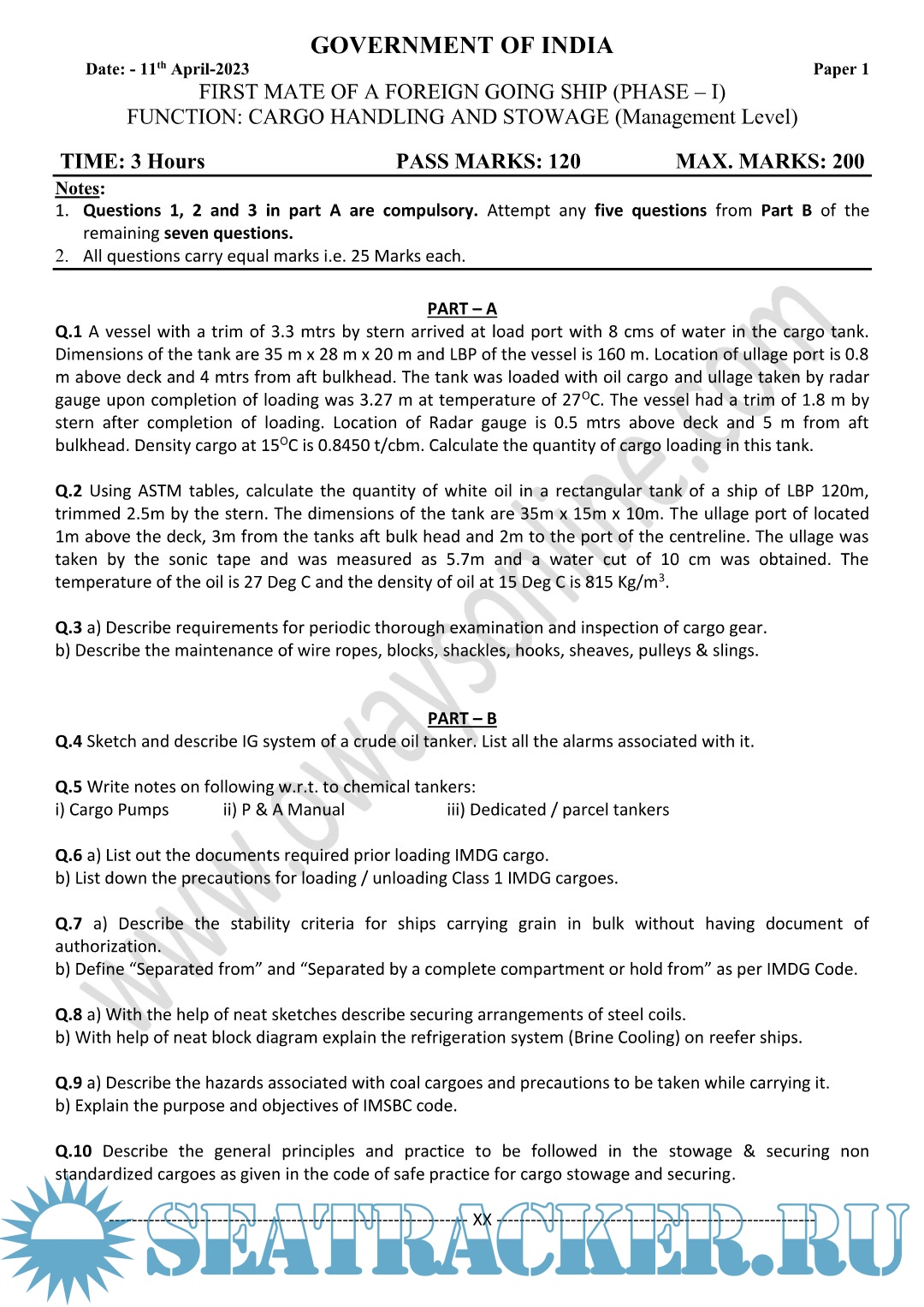 Description: Cargo Chief Mate Ph 1 QP Till April 2023