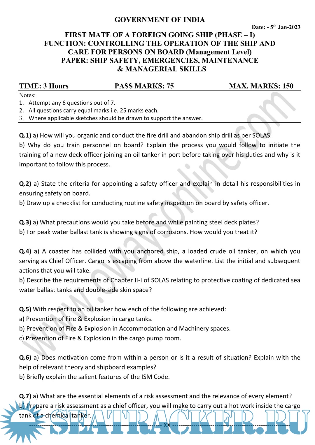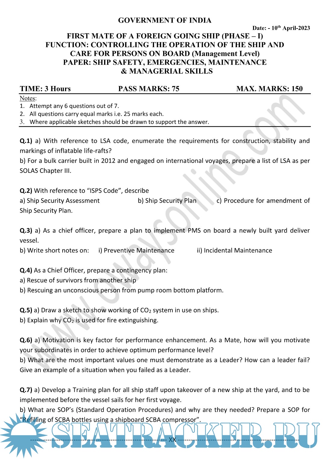 Question Paper Set (May 2023) Phase II (Chief Mate F.G.) Mercantile Marine Department (MMD), India…