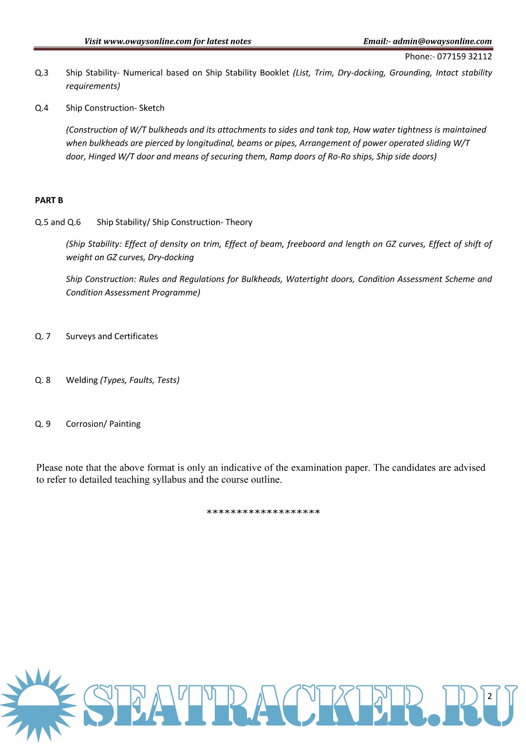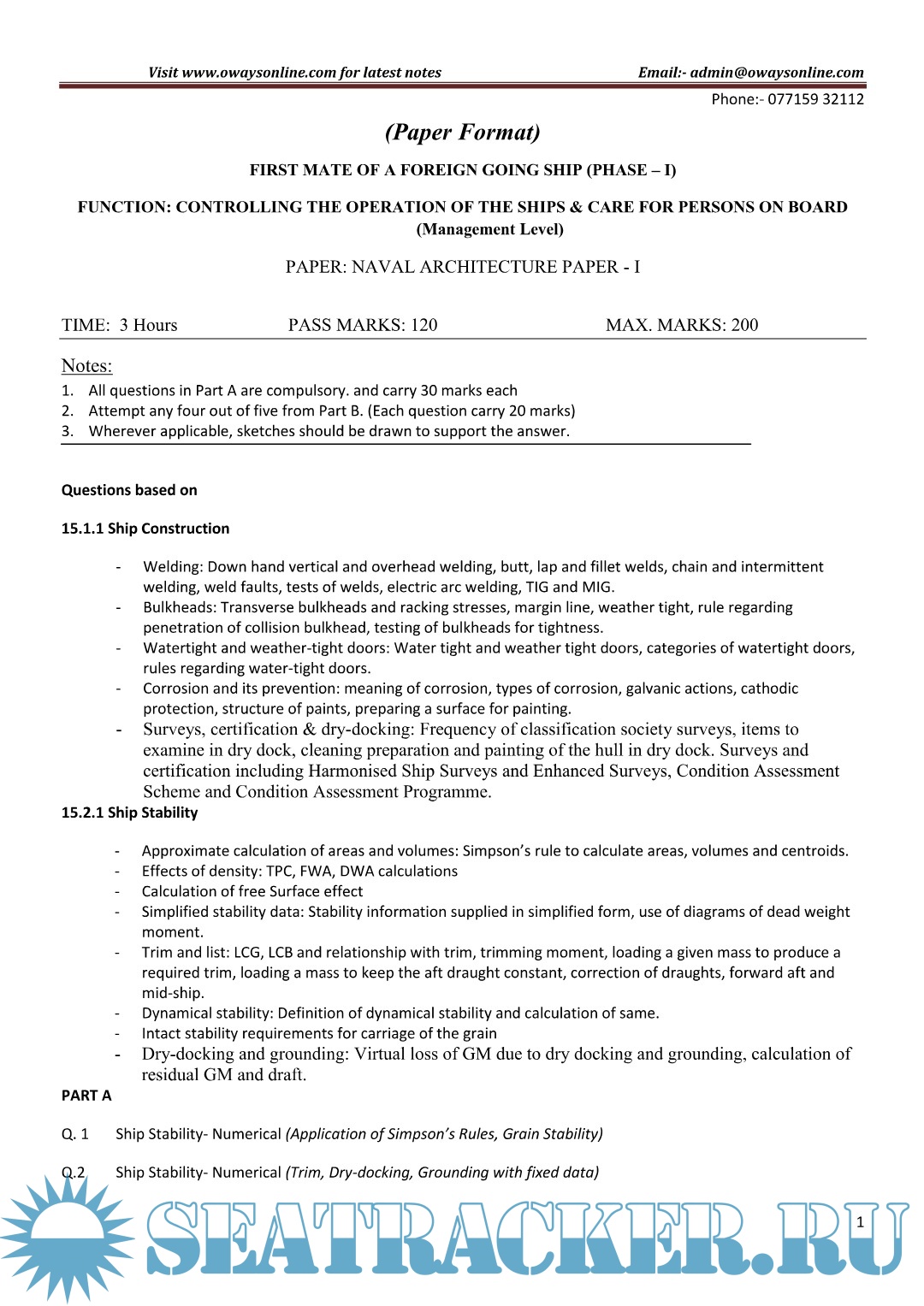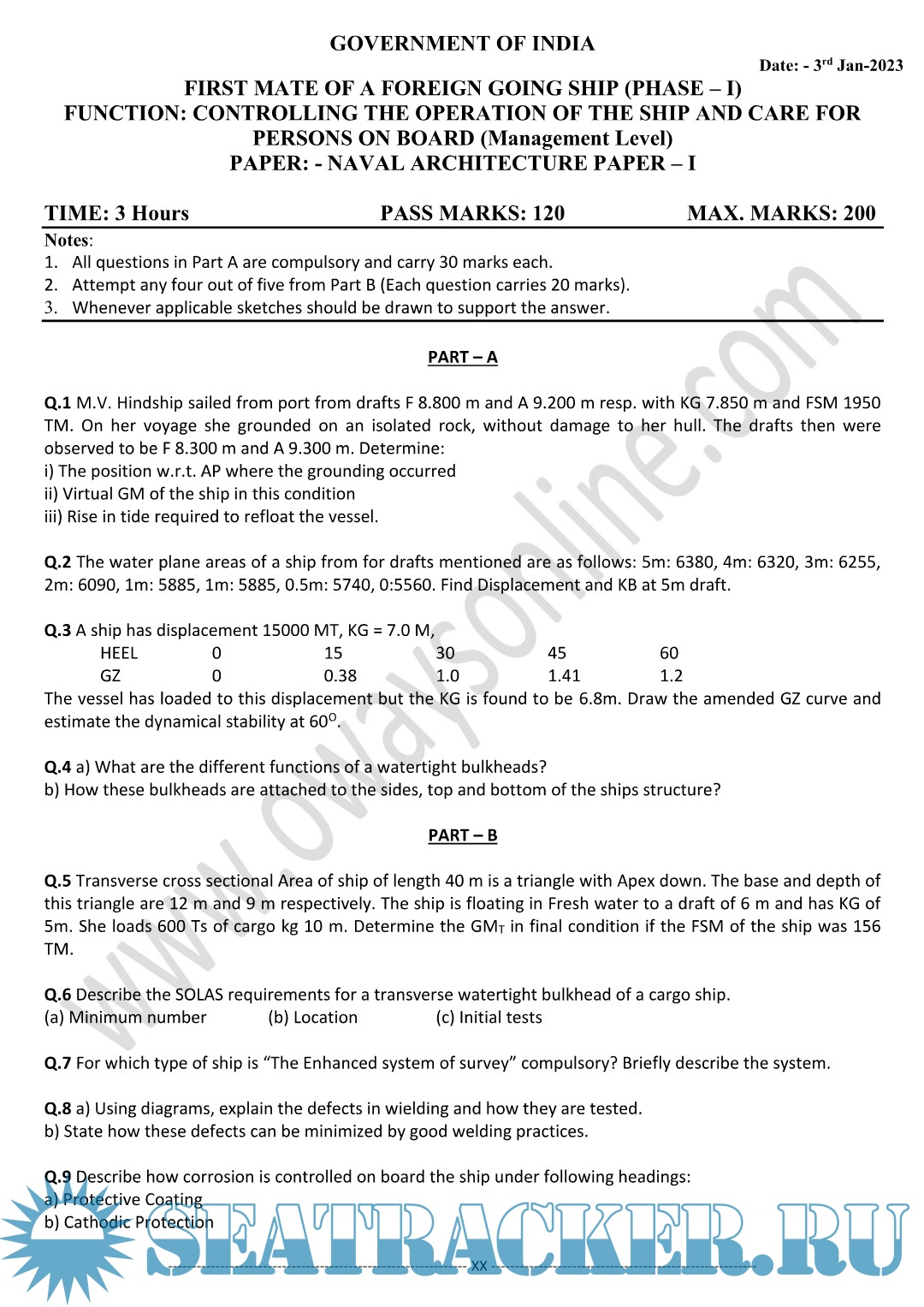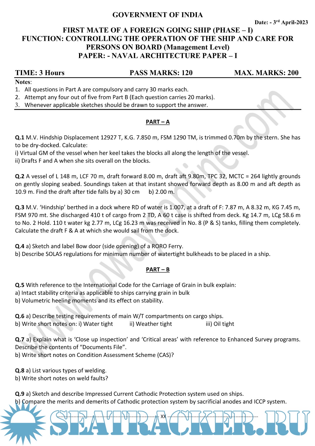 Question Paper Set (May 2023) Phase II (Chief Mate F.G.) Mercantile Marine Department (MMD), India…
